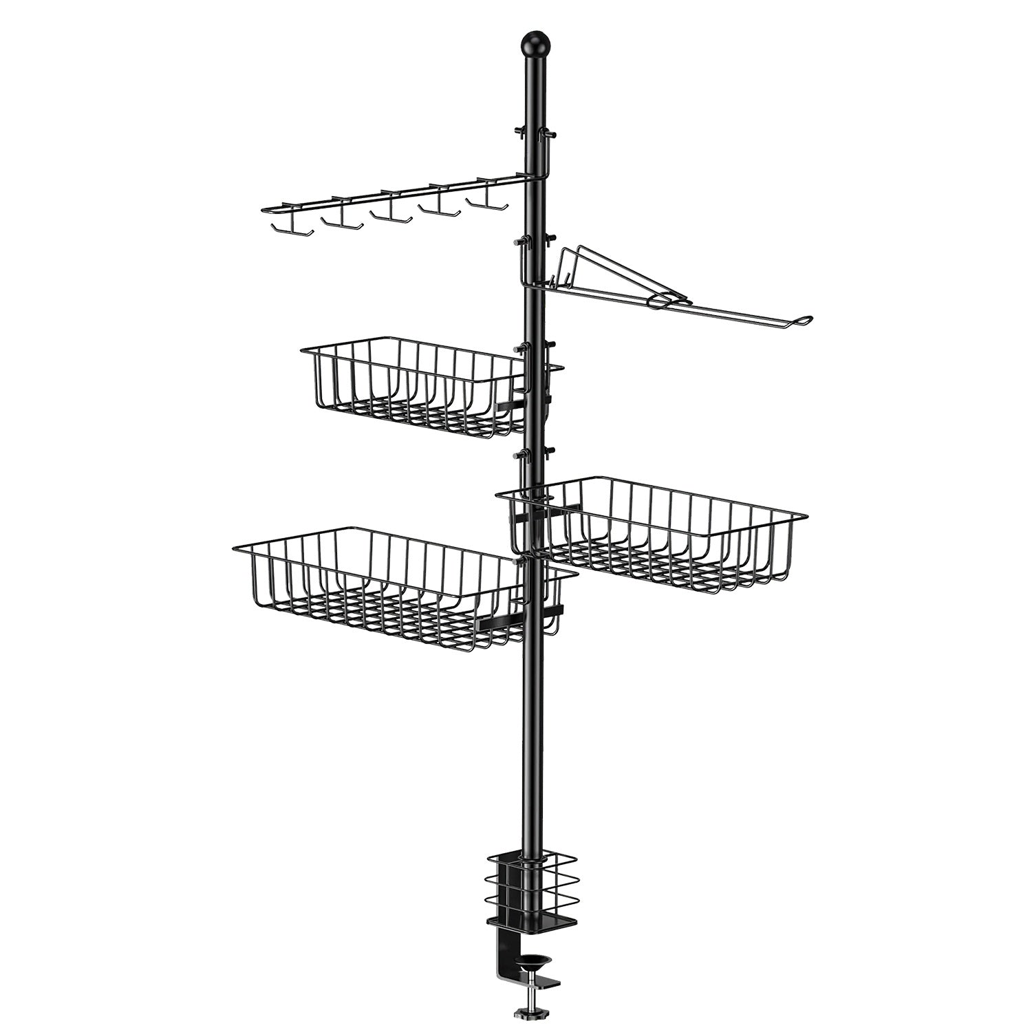 - *Easy To Assemble The assembly process is definitely effortless,as it only requires connecting the supportive rods and hanging all the accessories,even one person can quickly finish installation in 2 minutes. Hook-up design allows this grill storage rack also simply to take apart and store. Wide Compatibility*: Equipped with a C-shape clamp base,this griddle caddy can be firmly attached to any Blackstone griddle cooking stations,outdoor tables or any other BBQ grill with thickness under 2.28in. A perfect addition to any outdoor party,like BBQ,camping,picnic,family gathering.