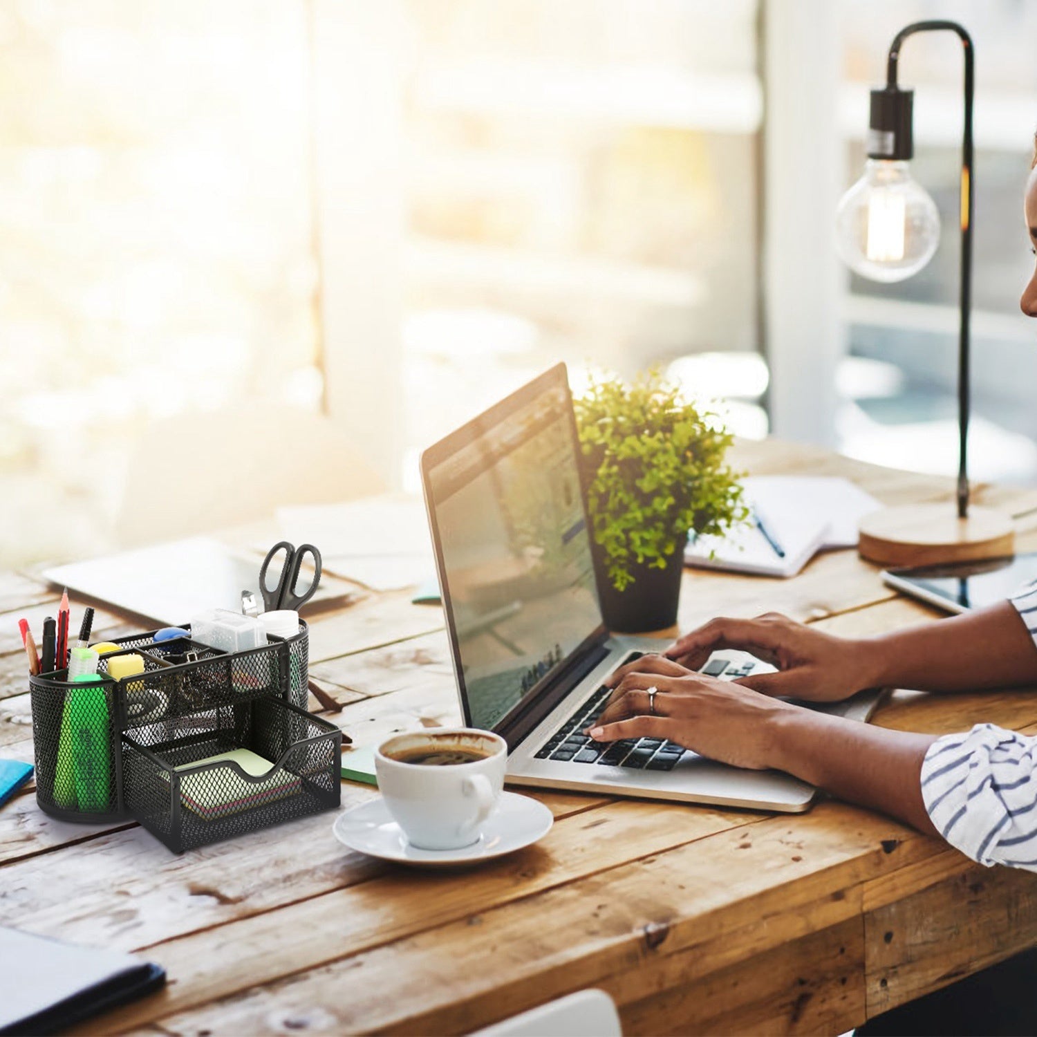 US Local 1Pc Metal Mesh Pencil Holders Desk Organizer With 9 Compartment Pen Holder Storage