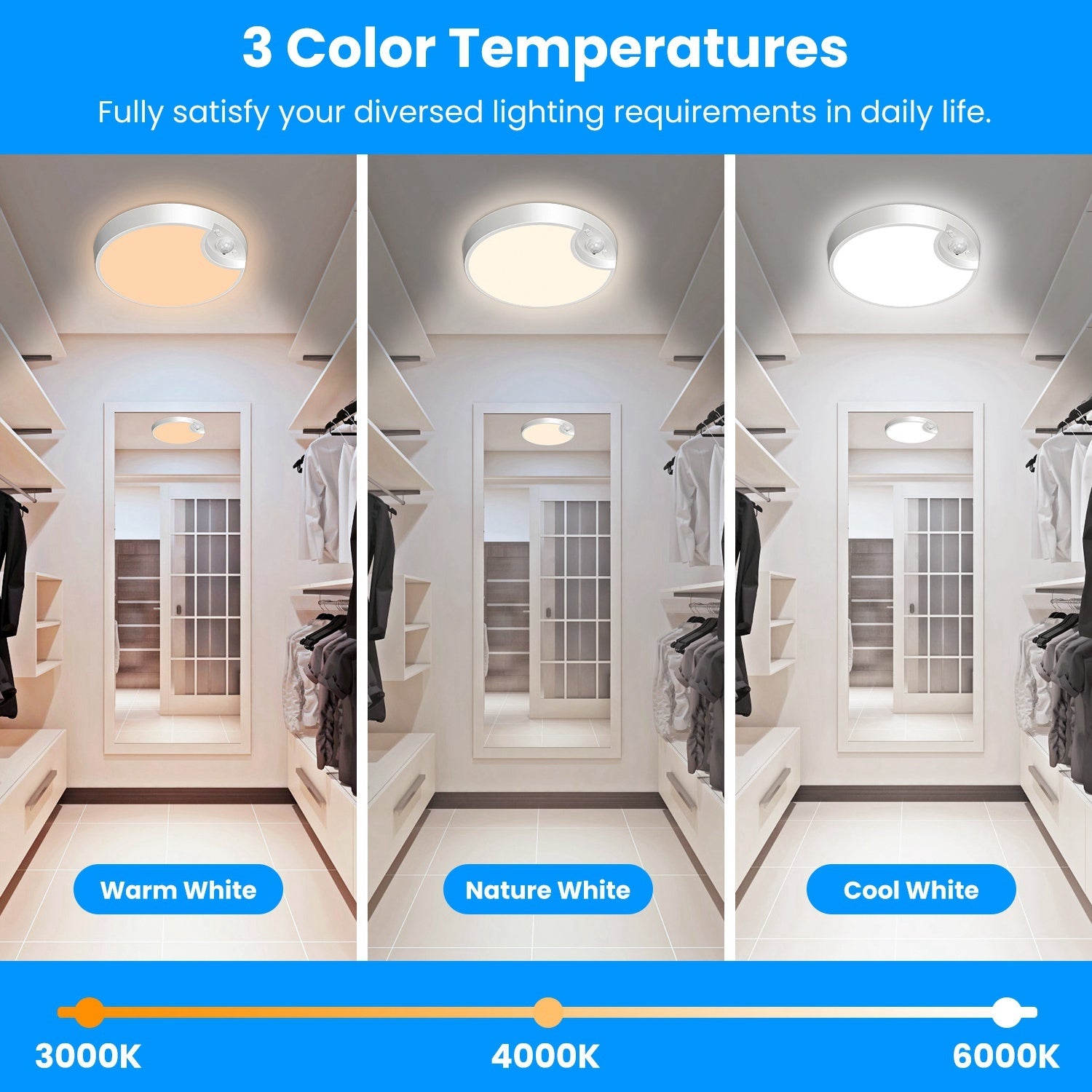 US Local 1Pc Rechargeable Motion Sensor Ceiling Light Dimmable LED Ceiling Light With Remote Timer 3 Light Colors 3 Modes For Stairs Garage Bathroom