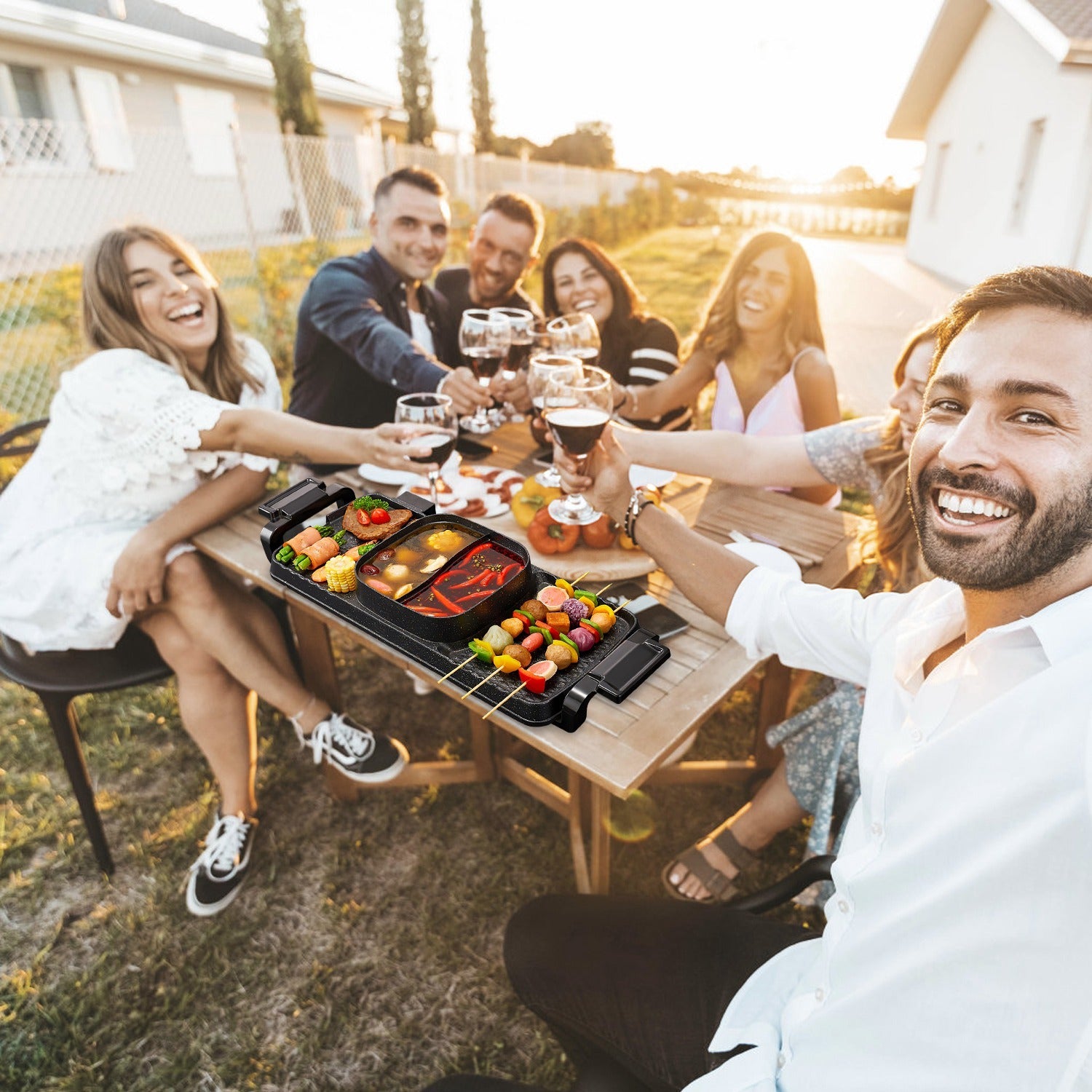 - *2-IN-1 Hot Pot And Grill Combo*: Combing hot pot and 2 grilling areas,our innovative 2-in-1 electric pot and griddle allows you to enjoy 2 distinct flavors of delicacies at the same time. 3.7QT large capacity hot pot is especially designed with a divider,adding an extra layer of flavor to your dining experience. Moreover,the groove design on grill plates ensures precise and efficient treatment for skewers.