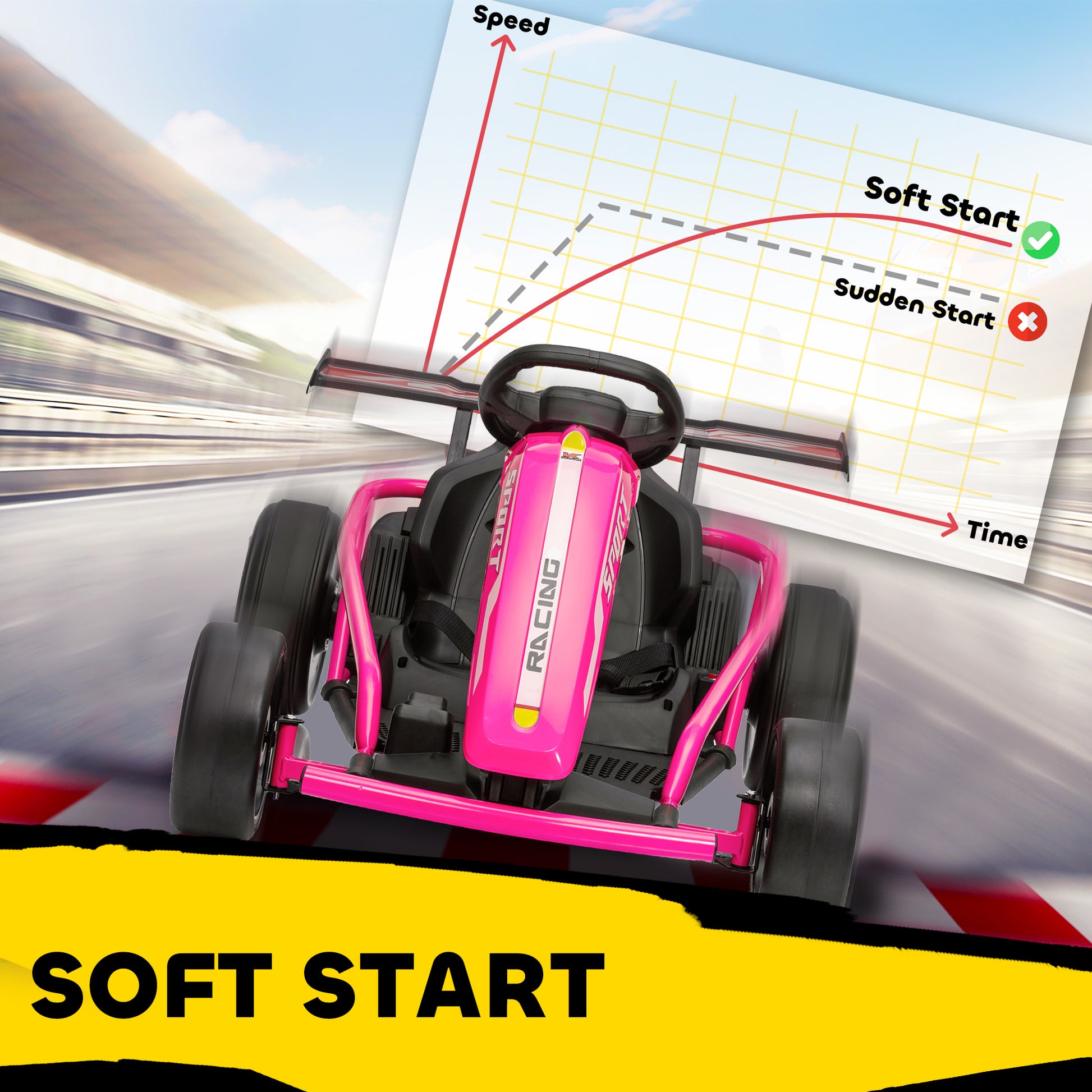 The Qaba electric go-kart provides your child with a joyful racing experience. Its dual 24V motors provide power for thrilling drifts at adjustable speeds, while a reinforced metal frame and specialized tires provide long-lasting stability and safety. Witness your child's confidence soar as they master drifting in a secure, immersive, and exciting kids' go-kart, giving you complete peace of mind. Features: - Dual 24V motors offer 3.7-8.1 MPH speed for thrilling racing action - Holds up to 154 lbs. with a reinforced frame for stable, safe driving - Nylon-banded rear wheels enable smooth, controlled slides, making drifting easy and fun - Soft-start system provides gradual acceleration for a safer, jerk-free ride - Ergonomic racing seat and a safety belt keep young drivers secure during turns - Long-lasting 24V battery provides up to 40 minutes of continuous racing excitement - Spacious design is perfectly sized for older children aged 8 to 12 years - Assembly required Specification: - Color: Pink - Material: PP, Metal - Overall Dimensions: 46.9" L x 30.3" W x 21.3" H - Seat Size: 14.4" W x 7.9" D - Seat Height: 7.5" H - Front Wheel: 8.7" Dia. - Rear Wheel: 11" Dia. - Battery: 2 x 12V 7AH - Charging time: 8-12 h - Run time: 40 min - Speed: 3.7-8.1 mph - Weight Capacity: 154 lbs. - Recommended Age: 8-12 years - Safety Standard: ASTM F963, CPSIA - Item Label: 370-446V80PK - NOTE: Always monitor your children while they are riding Package Includes: - 1 x Electric Go Kart - 1 x Manual The Qaba electric go-kart provides your child with a joyful racing experience. with a reinforced frame for stable, safe driving - Nylon-banded rear wheels enable smooth, controlled slides, making drifting easy and fun - Soft-start system provides gradual acceleration for a safer, jerk-free ride - Ergonomic racing seat and a safety belt keep young drivers secure during turns - Long-lasting 24V battery provides up to 40 minutes of continuous racing excitement - Spacious design is perfectly sized for older children aged 8 to 12 years - Assembly required Specification: - Color: Red - Material: PP, Metal - Overall Dimensions: 46.9" L x 30.3" W x 21.3" H - Seat Size: 14.4" W x 7.9" D - Seat Height: 7.5" H - Front Wheel: 8.7" Dia. - Recommended Age: 8-12 years - Safety Standard: ASTM F963, CPSIA - Item Label: 370-446V80RD - NOTE: Always monitor your children while they are riding Package Includes: - 1 x Electric Go Kart - 1 x Manual The Qaba electric go-kart provides your child with a joyful racing experience. with a reinforced frame for stable, safe driving - Nylon-banded rear wheels enable smooth, controlled slides, making drifting easy and fun - Soft-start system provides gradual acceleration for a safer, jerk-free ride - Ergonomic racing seat and a safety belt keep young drivers secure during turns - Long-lasting 24V battery provides up to 40 minutes of continuous racing excitement - Spacious design is perfectly sized for older children aged 8 to 12 years - Assembly required Specification: - Color: Blue - Material: PP, Metal - Overall Dimensions: 46.9" L x 30.3" W x 21.3" H - Seat Size: 14.4" W x 7.9" D - Seat Height: 7.5" H - Front Wheel: 8.7" Dia. - Recommended Age: 8-12 years - Safety Standard: ASTM F963, CPSIA - Item Label: 370-446V80BU - NOTE: Always monitor your children while they are riding Package Includes: - 1 x Electric Go Kart - 1 x Manual.