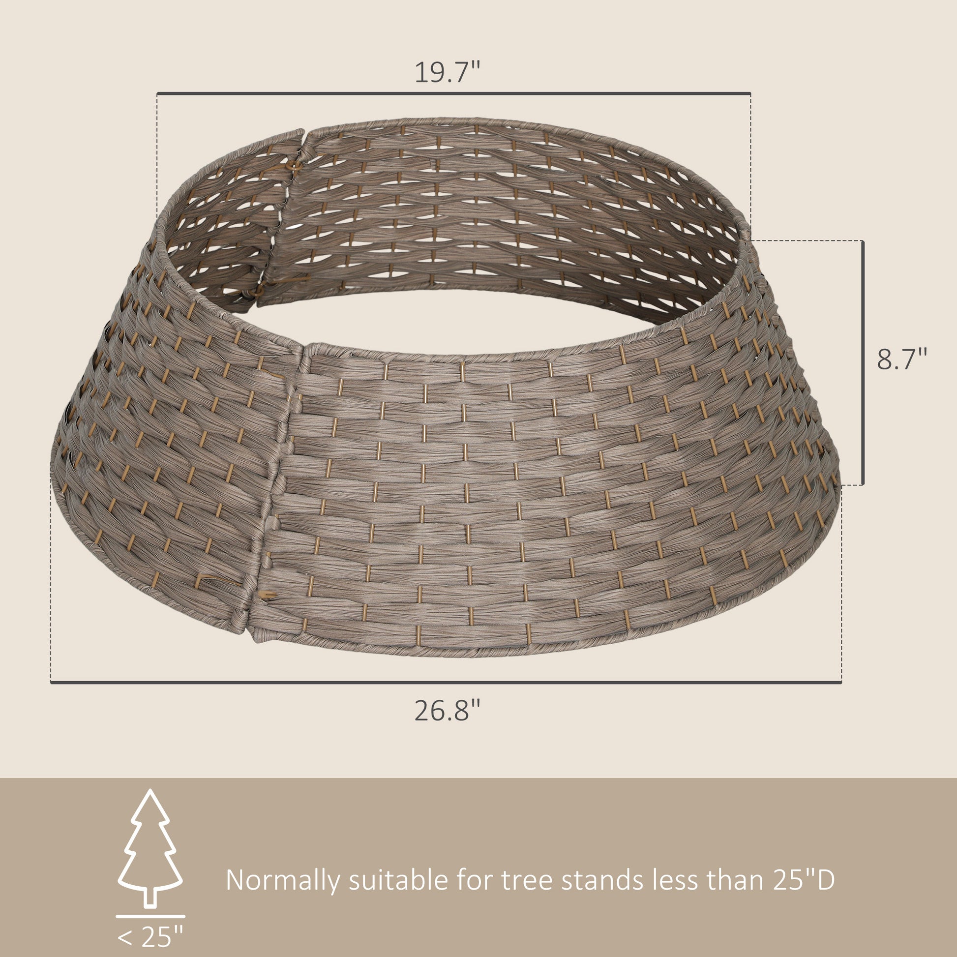 US Local 27 Inch Rustic Christmas Tree Skirt, Plastic Woven Christmas Tree Collar For Party, Holiday, Home Decoration, Coffee