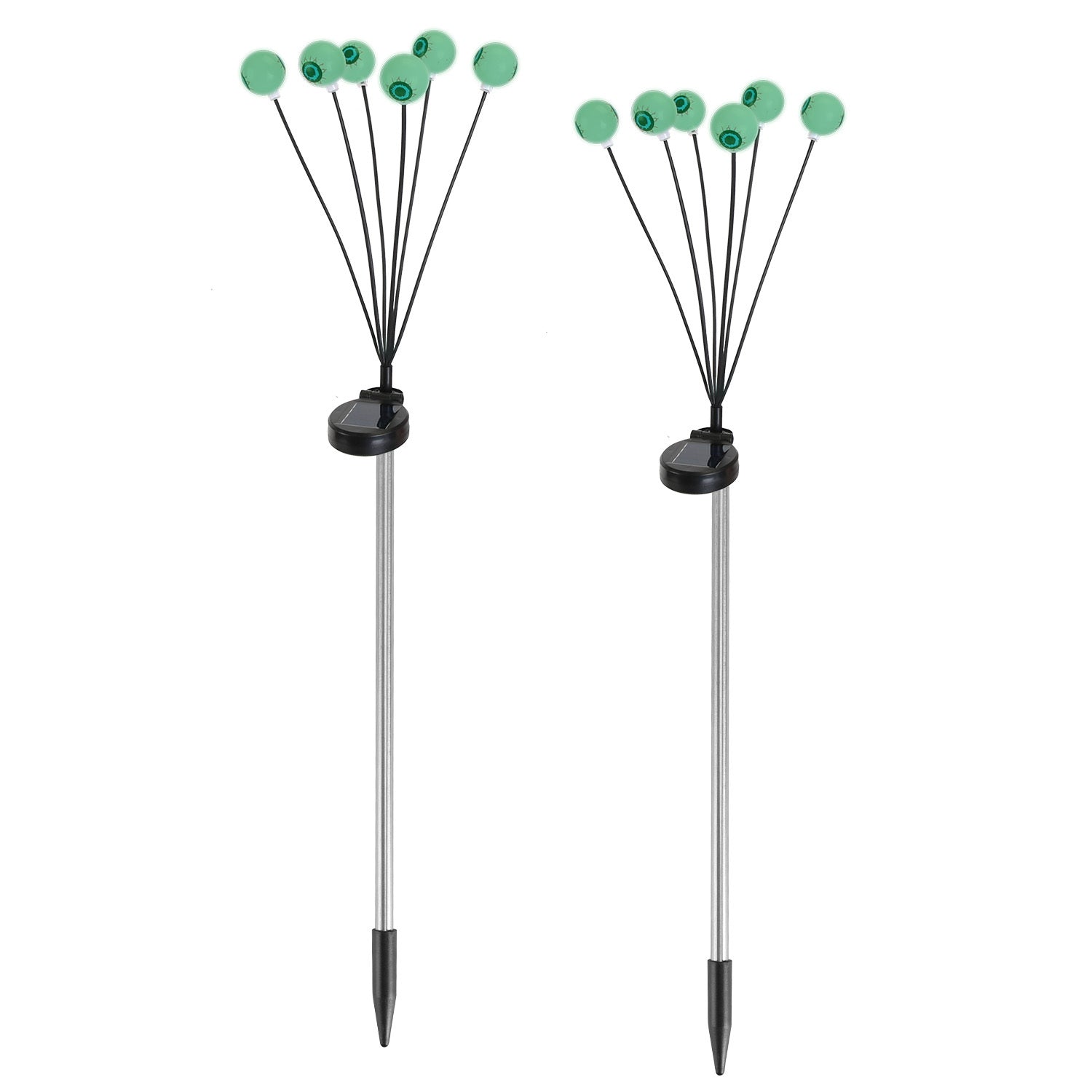 2Pcs Purple Light OR 2Pcs Green Light Solar Scary Eyeballs Lights Outdoor Halloween Decoration Swaying Light Halloween Path Lights Ornaments With Total 12LED IP65 Waterproof For Yard Garden