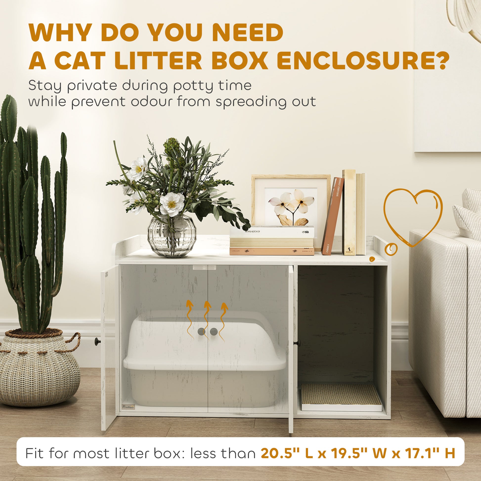 US Local 32 Cat Litter Box Enclosure With Scratching Mat, Cat Entrance, Fit Most Of Cat And Litter Box, Distressed White