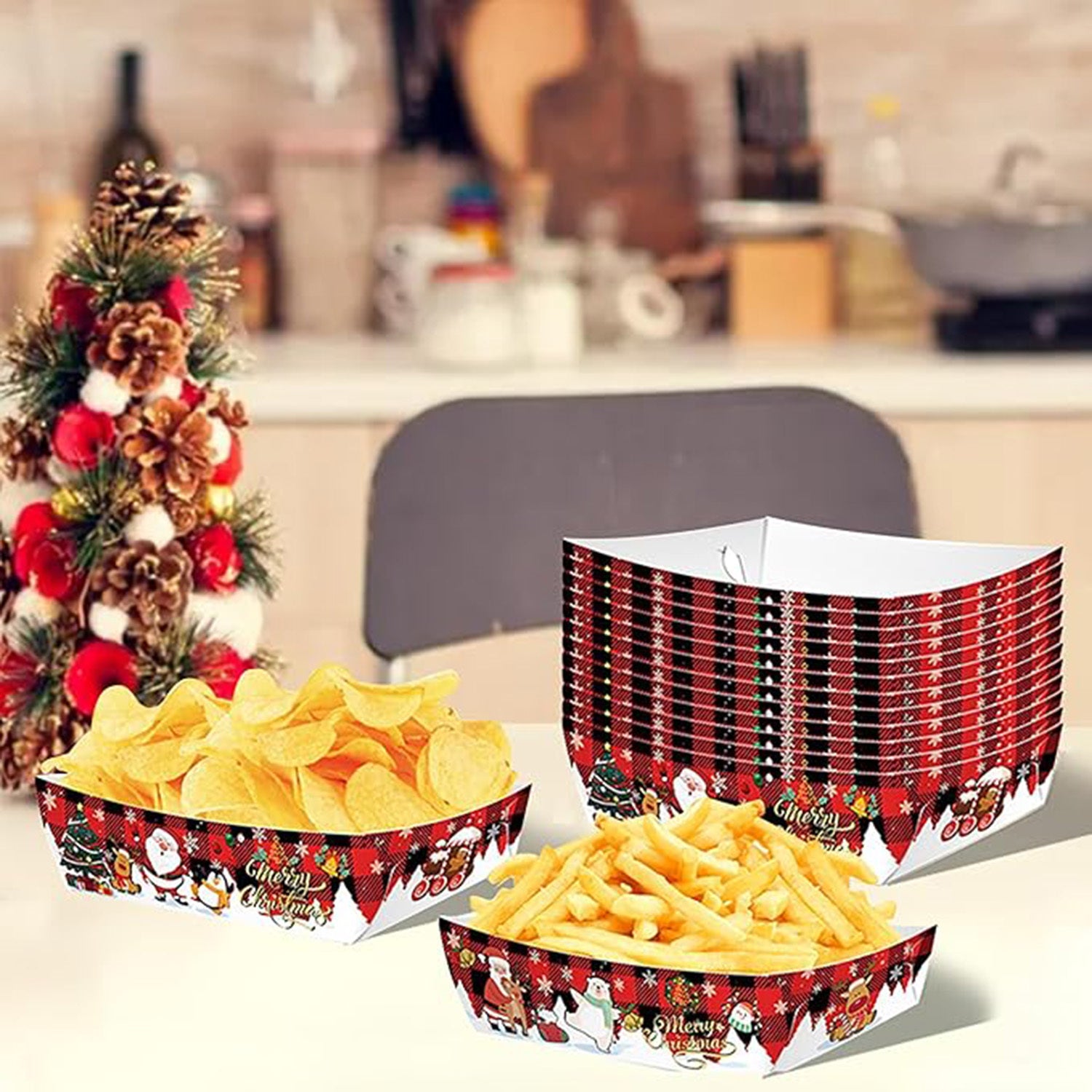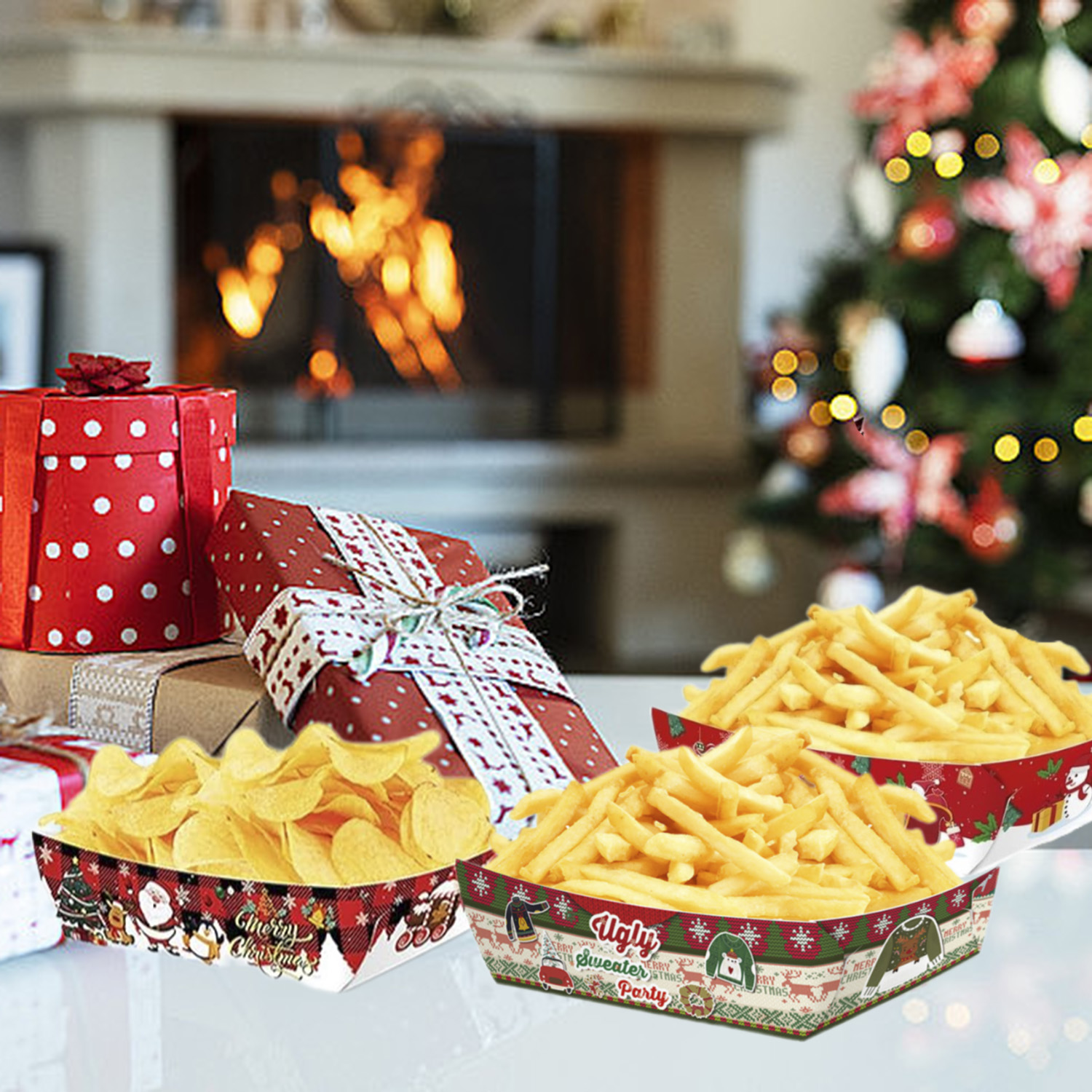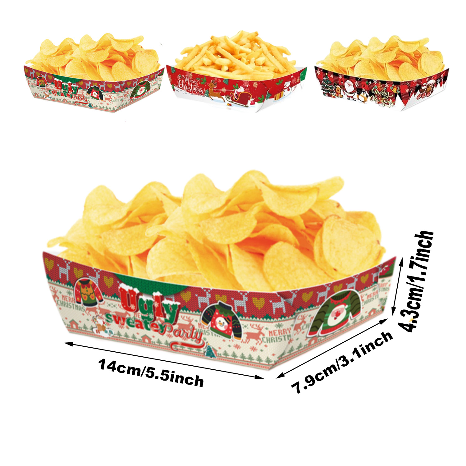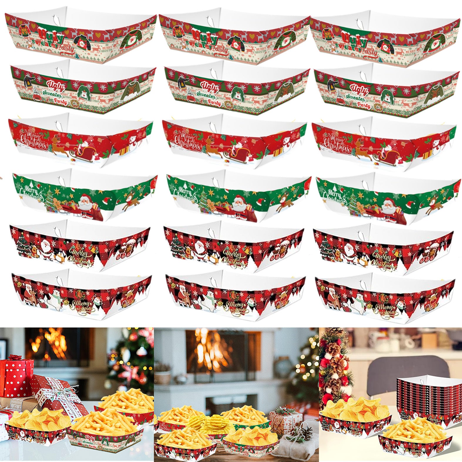 Specifications Material: Paper Color: Red and Green Size: 14*7.9*4.3cm/5.5*3.1*1.7inch Package contents: 36Pcs Christmas Paper Food Trays