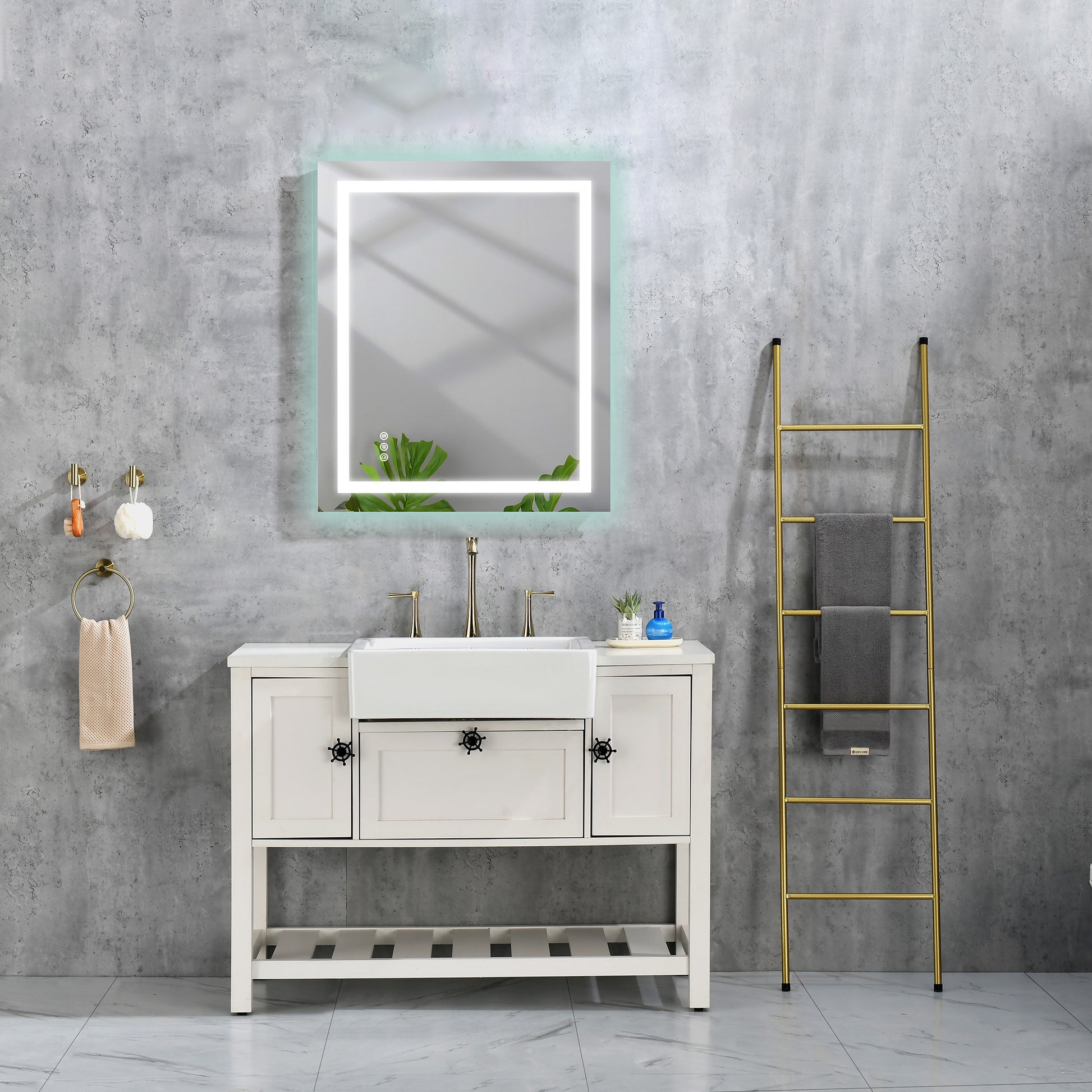- This bathroom mirror with lights offers 3 color temperature - Warm Light, Natural Light, and White Light. Easily switch lighting modes by touching the light button. Adjust brightness by long-pressing the button. lighted vanity mirror is designed to meet the lighting needs of different people. A great decorative addition to the bathroom.