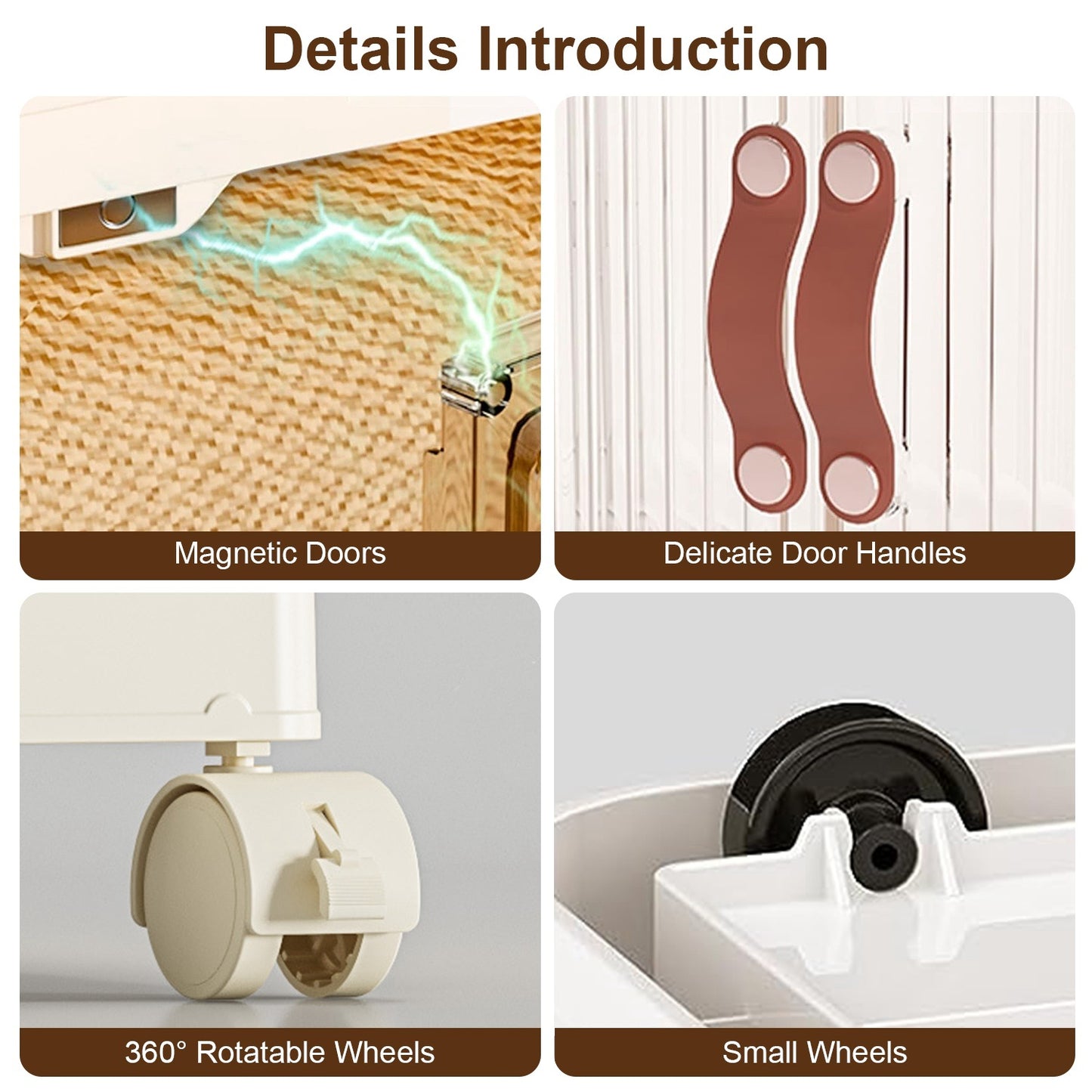 - *Easy To Use & Move*: Come with double magnetic doors and double handles,easy to store and take out items more conveniently. Per box comes with 4Pcs detachable 360¡ã rotatable movable wheels and 8 small wheels,which makes it easier for you to move it to any place in your house like from bedroom to living room.