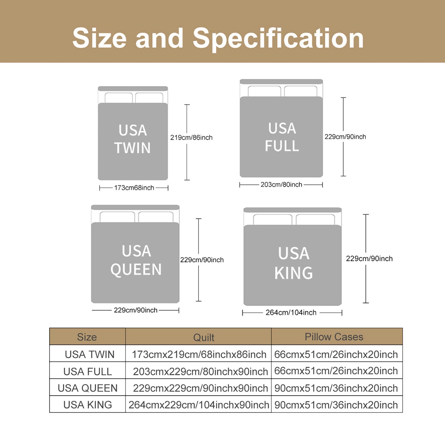 King Size Set ¨C Quilt: 104¡± W x 90¡± L & 2 PC King Shams ¨C 20¡± x 36¡±