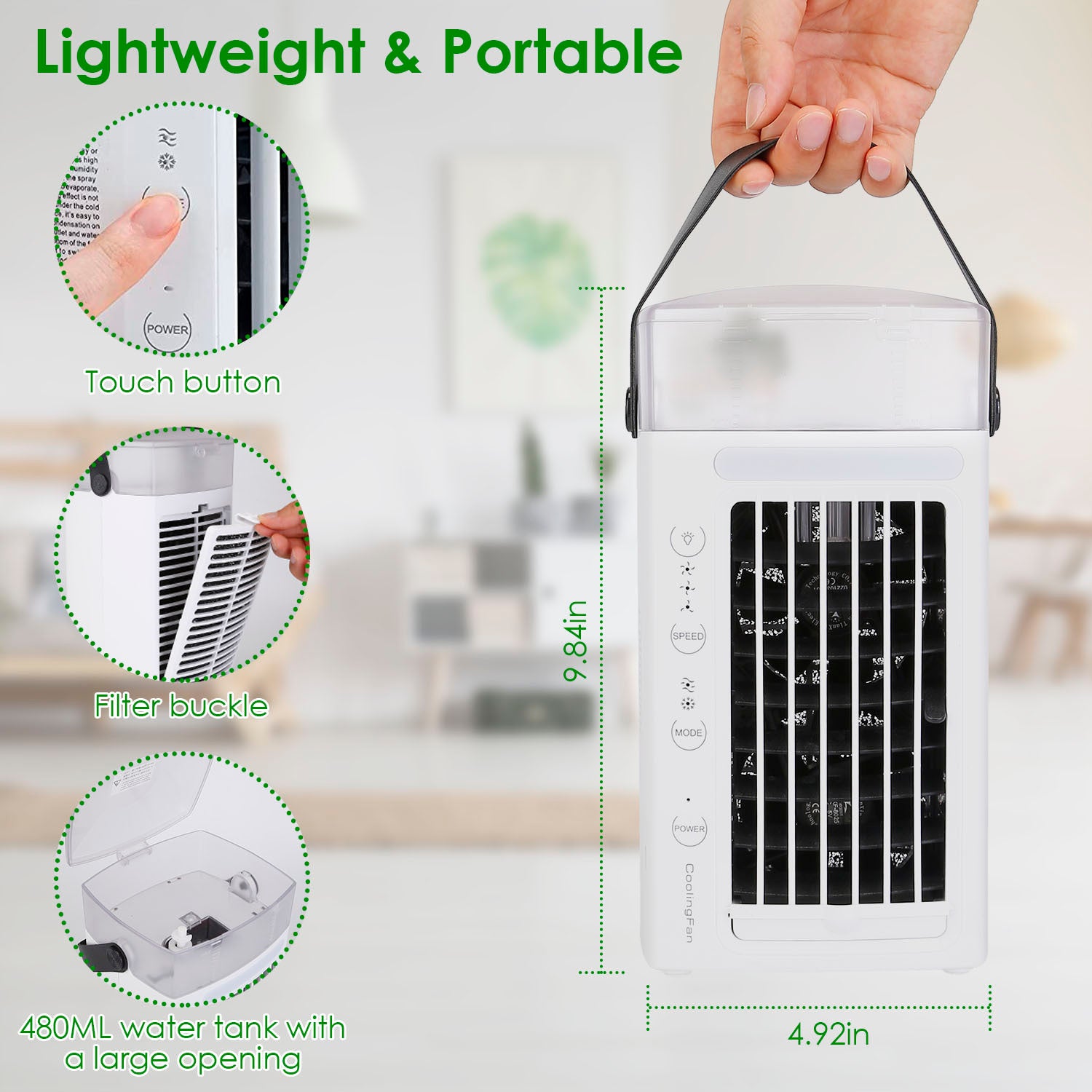 US Local 4 In 1 Portable Air Conditioner Fan Evaporative Air Cooler Water Mist Cooling Fan For Desktop 3 Speeds Nightlight