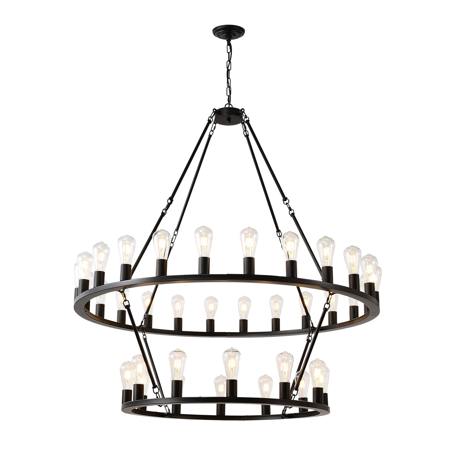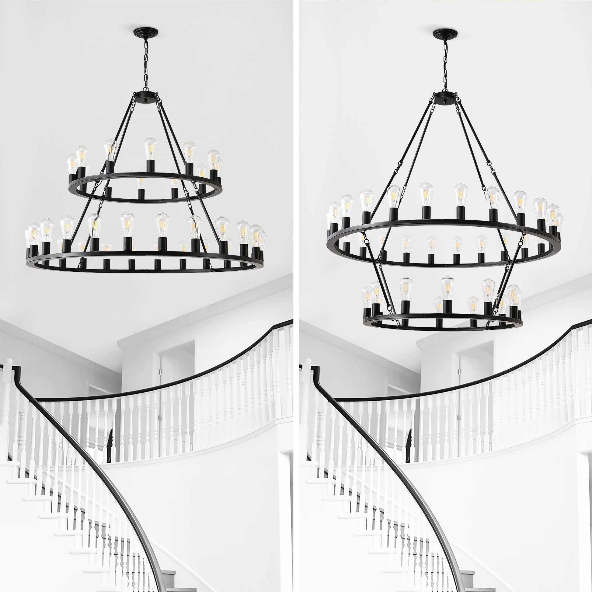 US Local 48 Inch Black Extra Large Wagon Wheel Chandelier, 2 Tier 36-Lights No Include Farmhouse Industrial Round High Ceiling Pendant Light Adjustable Chain, For Dining Room, Living Room,Kitchen