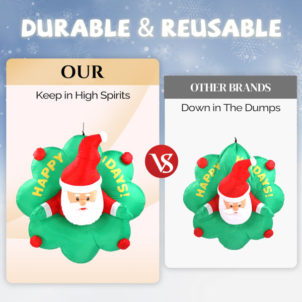 US Local 4ft Window Santa Claus Wreath, 5 LED Lights, Bundle Pocket Christmas Inflatable Decoration