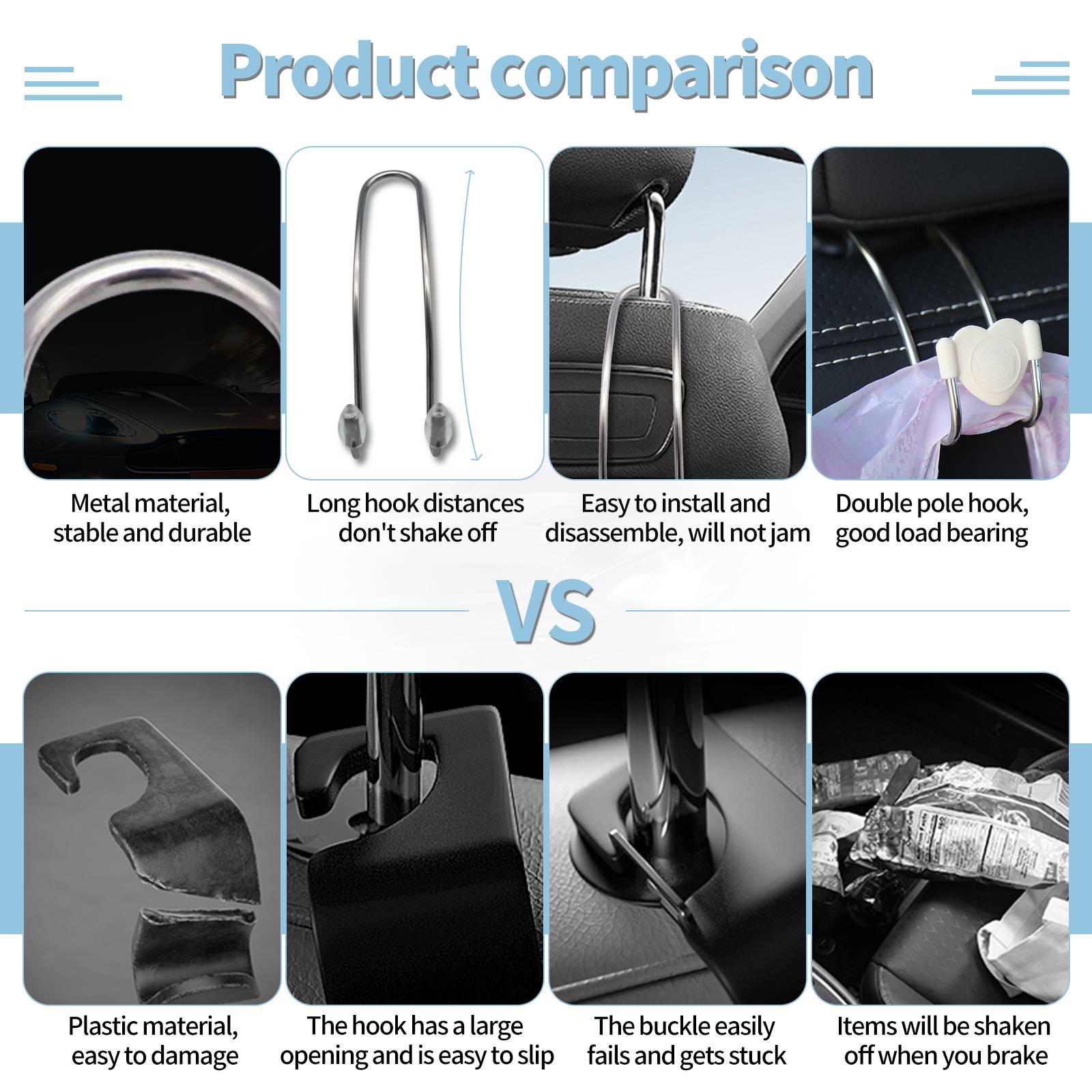 Enhance safety: Hanging items on hooks can reduce safety hazards caused by items sliding during driving.