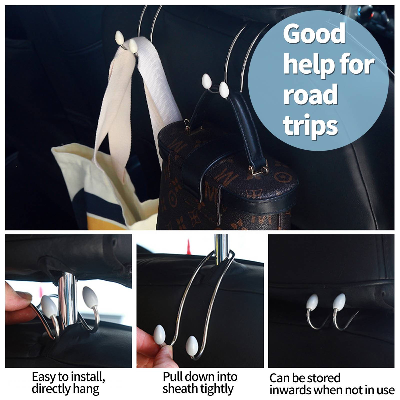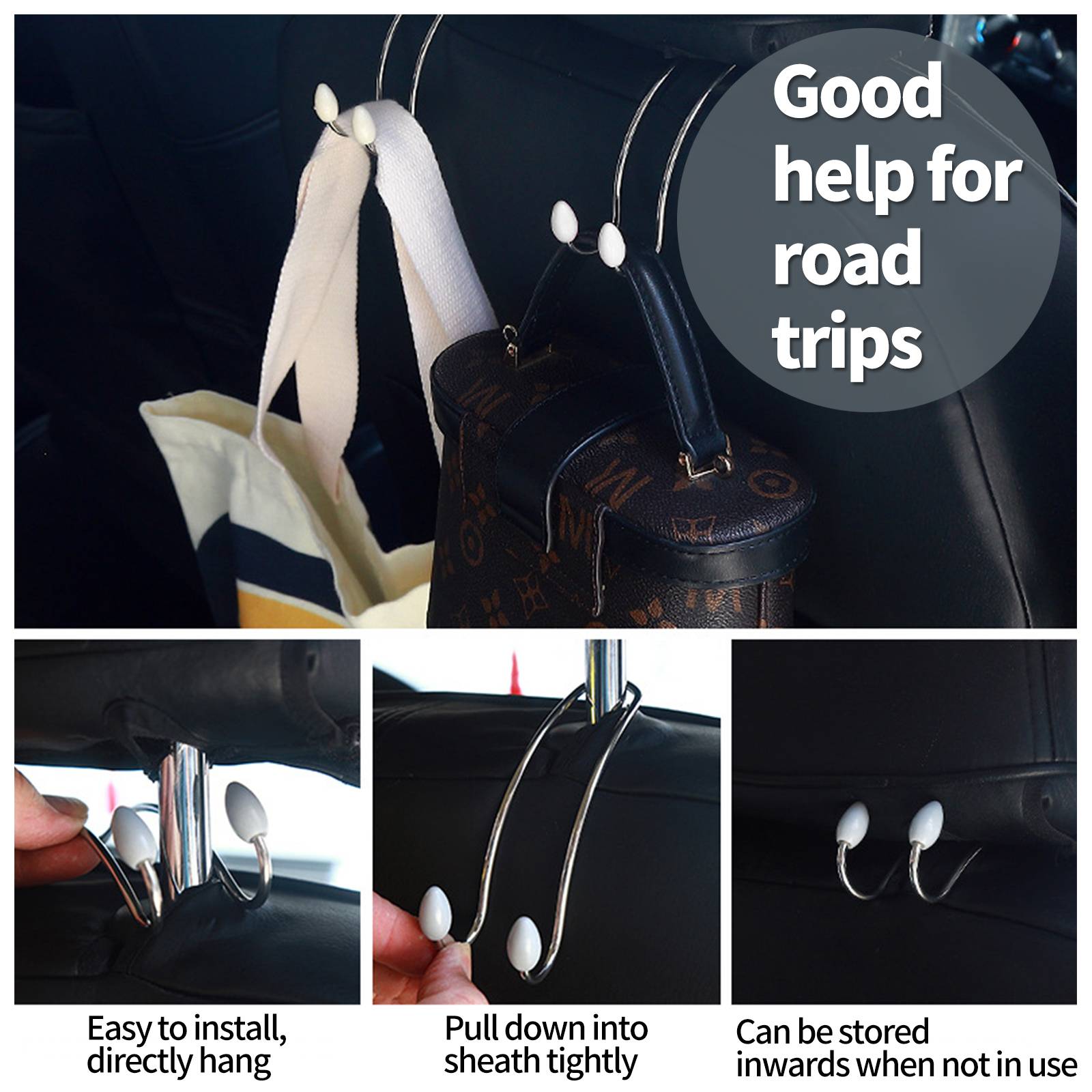 Simple installation for beginners: No need to remove the seat, the installation is simple and convenient. The overall arc design allows for upward retraction when not in use, providing a safe and hidden storage solution. It has strong load-bearing capacity and is suitable for all vehicle backrests.