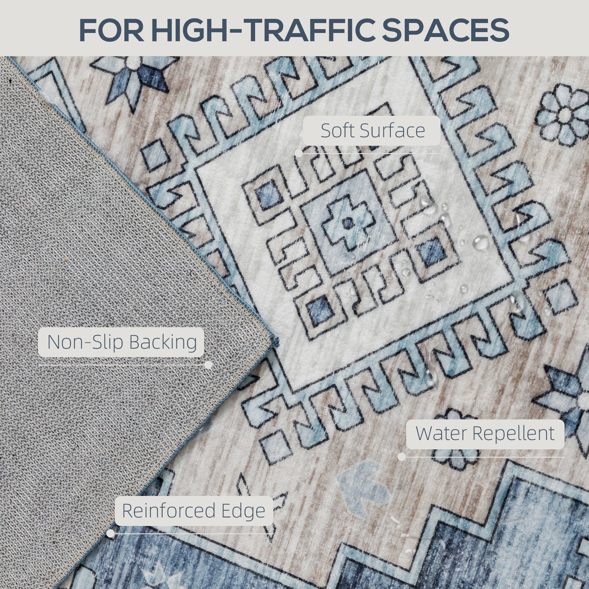 US Local 4x6 Area Rug, Vintage Washable Rug, Non-Slip Floor Carpet For Living Room, Bedroom, Dining Room, Blue