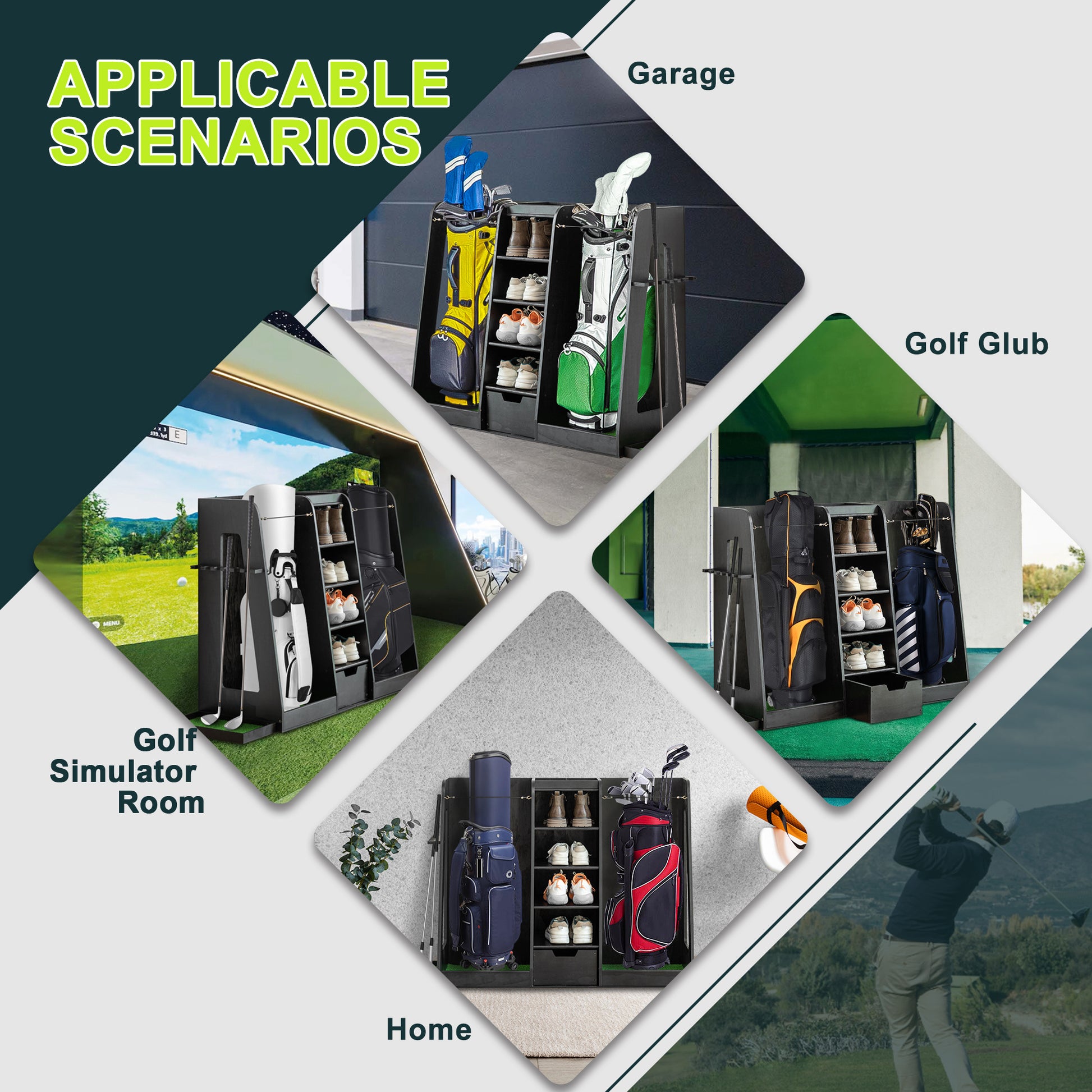 - ??Golf Club Storage Area??For easy access and organization, our storage racks come with a side bracket with club holders, allowing you to easily switch clubs during use.