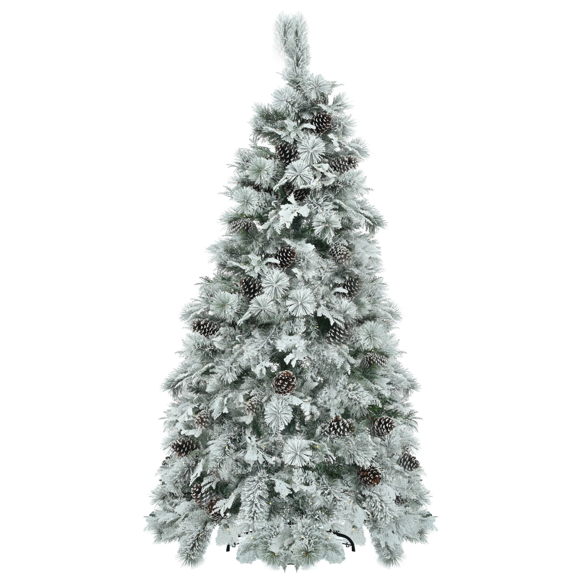 Vivid Look: This 6-foot tall pre-lit artificial Christmas tree boasts 403 lush branch tips with 2 different types of snow leaves, adorned with enchanting pine cones. This combination provides a vivid, natural look from any angle, creating an elegant snowy design. Transform your home into a magical winter wonderland with this beautifully detailed tree.