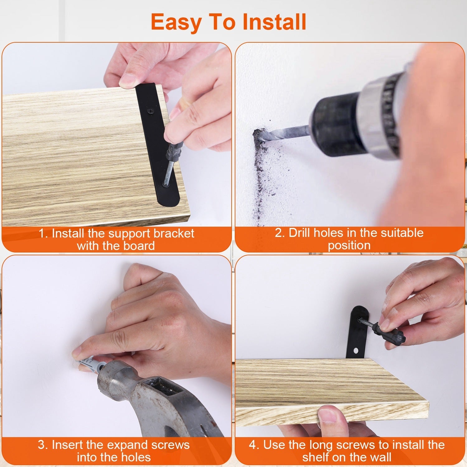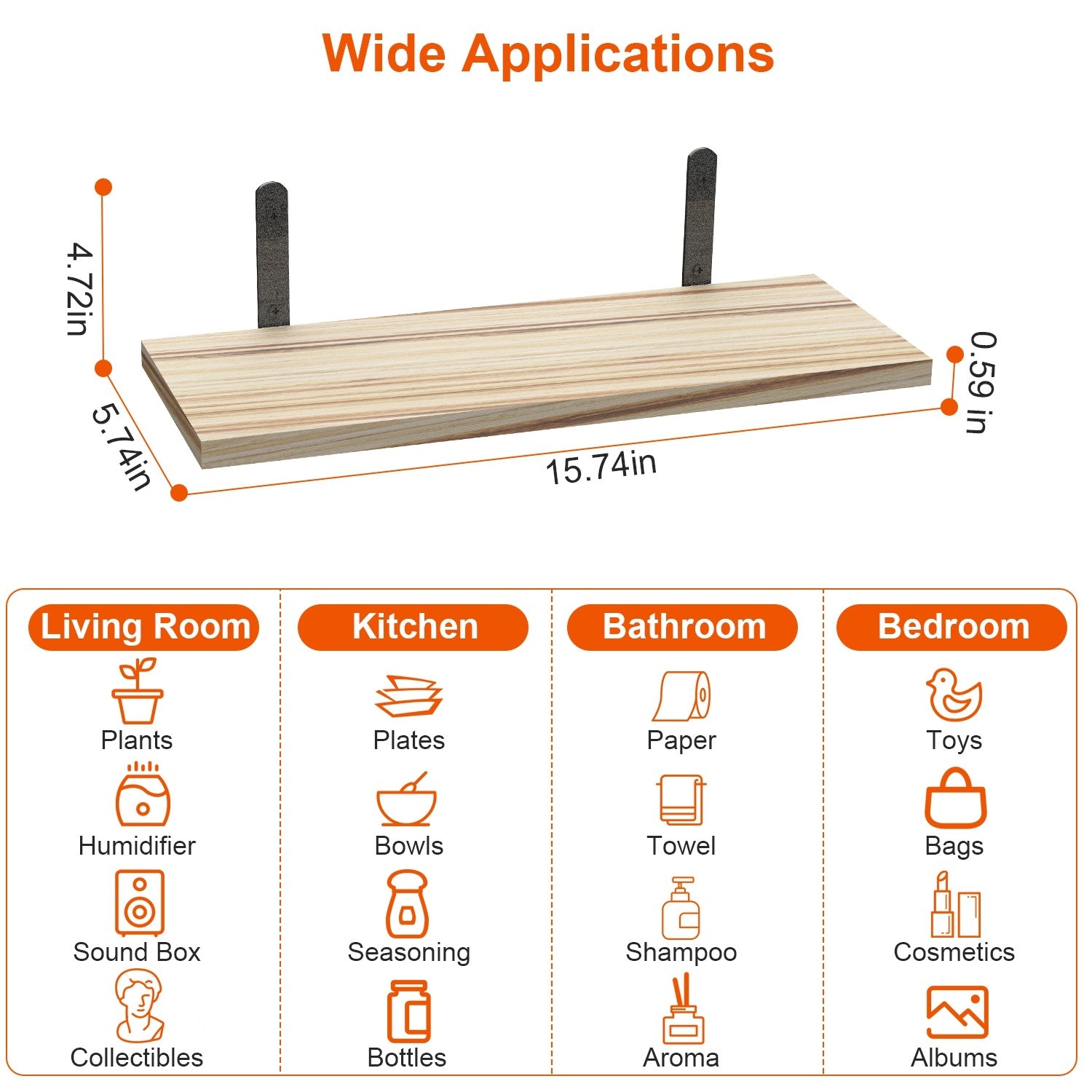 - *Natural Wood*: Made of natural paulownia with wooden texture and light brown color,these floating wall shelves has light weight,smooth surface and modern appearance. Able to match all kinds of interior style,like modern decor,rustic decor,farmhouse decor,and bohemia room decor.