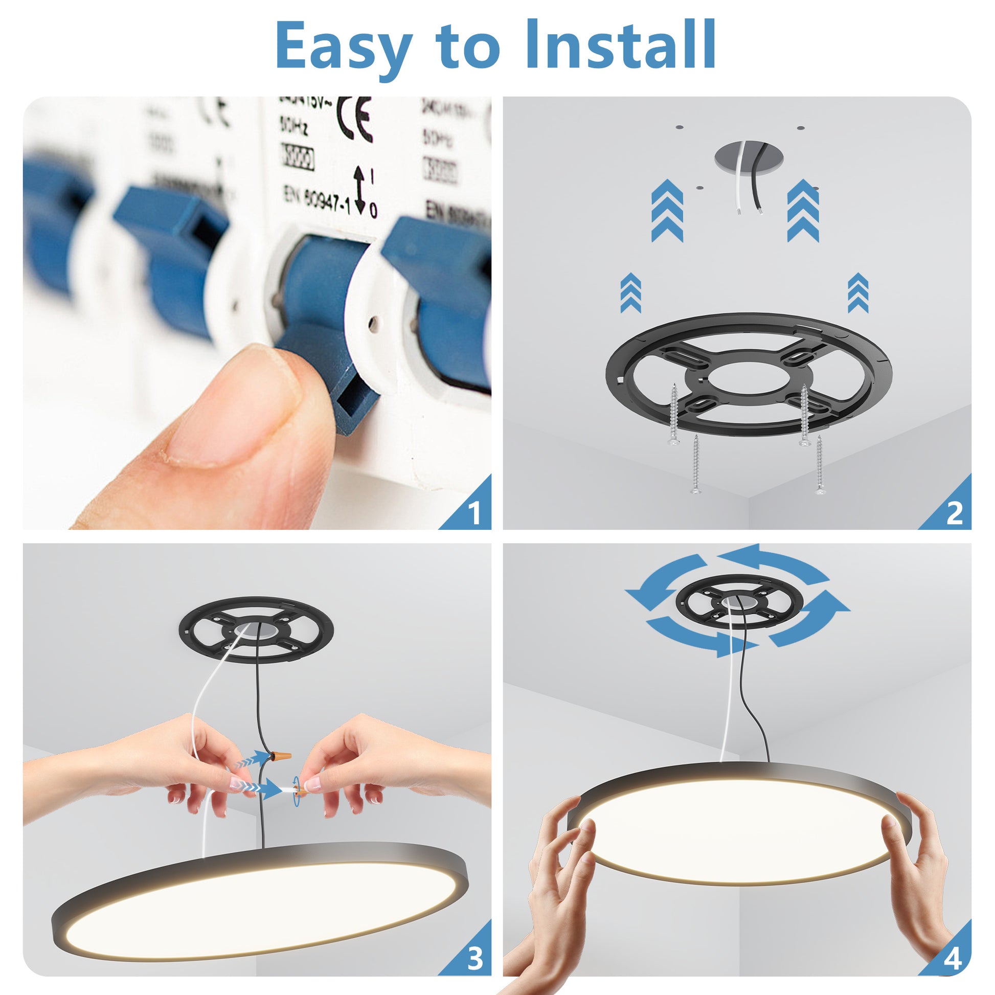 ¡¾Excellent Lighting Performance¡¿ Our led ceiling light fixtures built-in light filtering technology LEDs as its side light source, while soft light coverage to provide 360¡ãwide uniform lighting, providing you with a soft, even and non-stinging light , and illuminating a larger area. No flickering, no buzzing. ¡¾Energy Saving¡¿ This is an integrated LED ceiling lamp with 2880 lumens at only 24W (equivalent to a traditional 110W fluorescent), a great alternative to traditional light bulbs. Energy saving up to 90%. Provide enough brightness for medium-sized places with lower energy and power costs. ¡¾5 Color in 1 Ceiling Light¡¿This surface mount light fixtures offers 5 color temperatures for you to choose, you can choose 2700K comfortable and warm warm white for bedrooms and living rooms, 4000K neutral white for kitchens and bathrooms, and 6500K daylight white for tasks such as workplaces and reading and studying, you can choose your favorite color temperature in different places or atmospheres. ¡¾Well Sealed¡¿The ultra-thin bathroom ceiling light is designed with one-piece sealing, which is well sealed to prevent dust and flying objects from entering. With IP42 waterproof rating, it provides excellent performance in wet conditions and keeps the interior clean after years of use.The flush mount ceiling light is made of high-quality insulating plastic, which prevents the risk of short-circuiting and leakage, and no need to connect to a ground wire, which ensures the safety of your family.