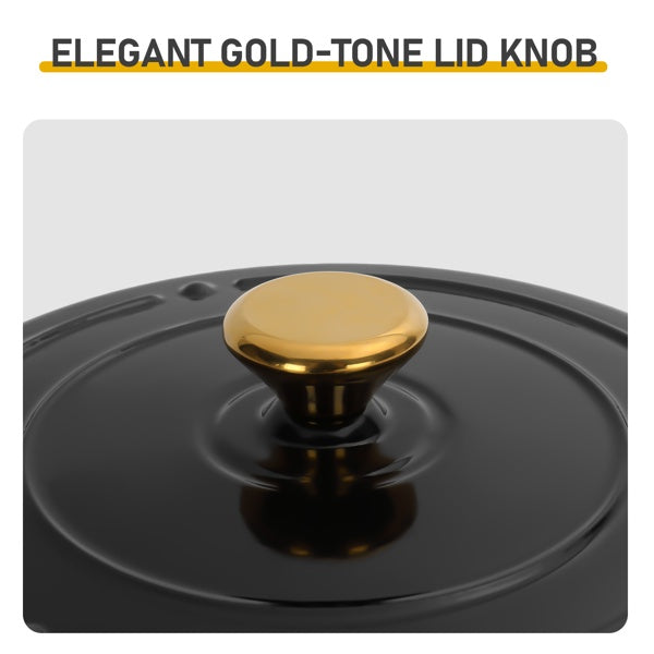 - Premium Cast Iron Construction: Heavy-duty cast iron body with interior and exterior black enamel coating ensures excellent heat retention, even cooking, and long-lasting durability.