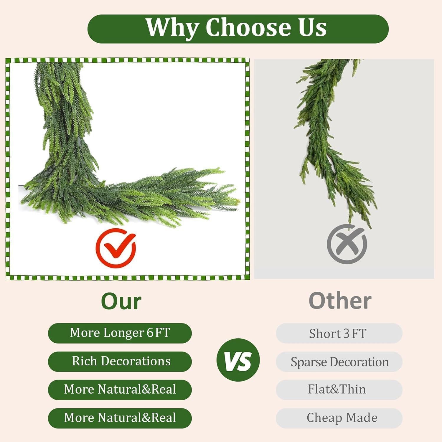 71 Inch Artificial Norfolk Pine Garlands Real Touch Christmas Pine Garland DIY Wreath Supplies Faux Cedar Realistic Greenery For Xmas New Year Party Table Wall Fireplace Mantl Decoration