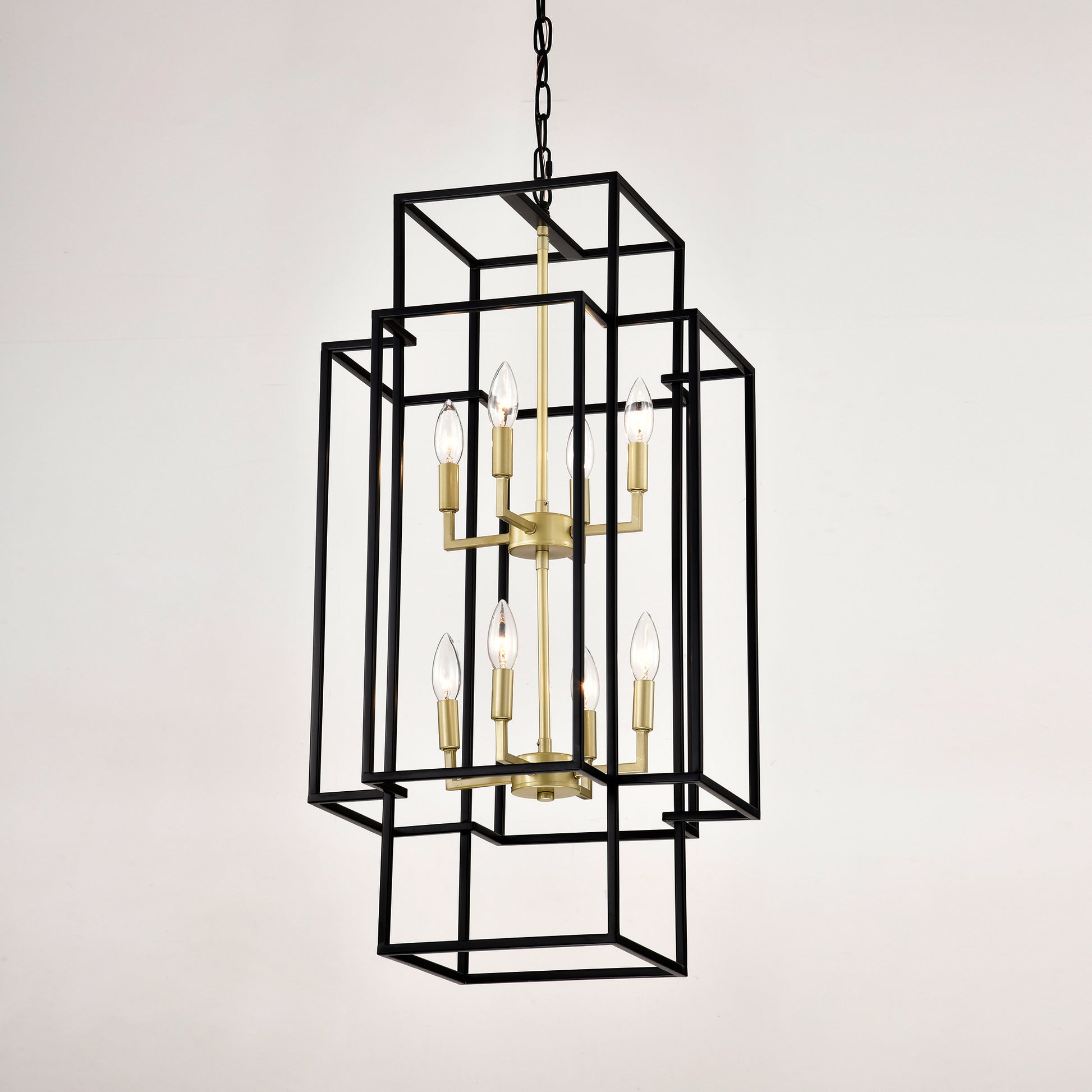 US Local 8-Light Metal Lantern Tiered Pendant Hanging Light Fixtures, Industrial Farmhouse Adjustable Height Chandeliers For Dining Room Hallway Foyer Entryway--Matte Black & Gold E12 Bulbs Not Included