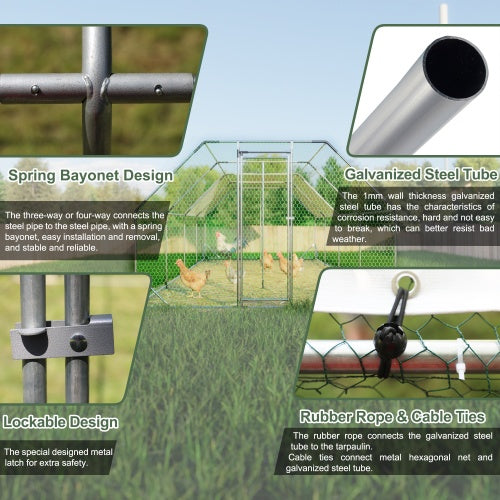 US Local 9.94 Ft. X 25.68 Ft. Galvanized Large Metal Walk In Chicken Coop Cage Farm Poultry Run Hutch Hen House