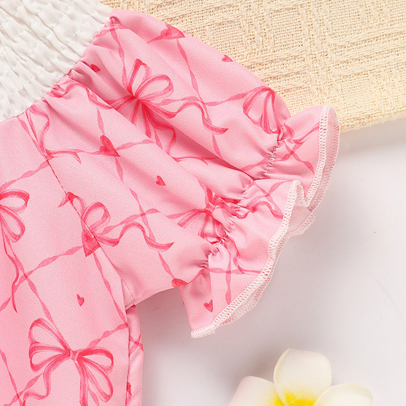 Baby Girl's Bowknot Romper ¨C "Daddy's Girl" Printed Bubble Sleeve Jumpsuit