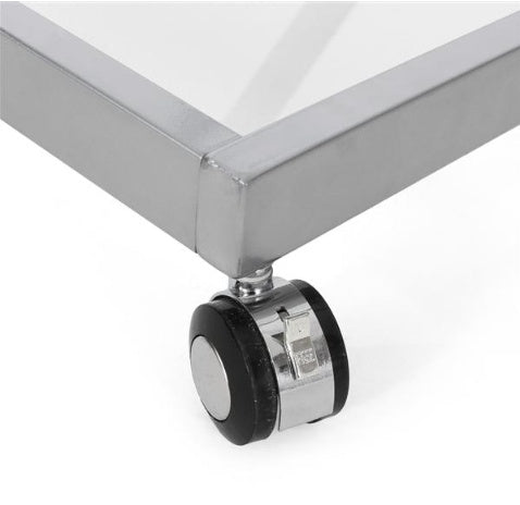 Rolling casters with locks: This bar cart offers rolling casters for easy mobility and can lock into place when you need it to be stationary.