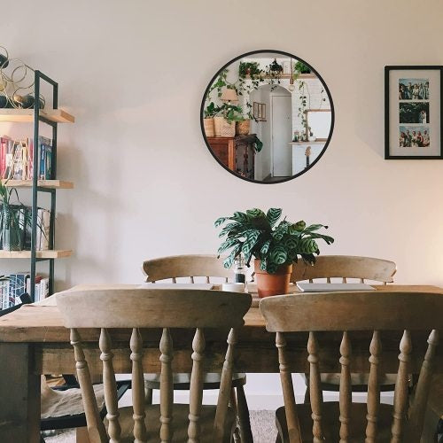 The wall mirror is made of high-quality 4mm high-definition glass with no deformation, and the brushed frame of the round mirror is a high-quality anti-rust aluminum alloy.