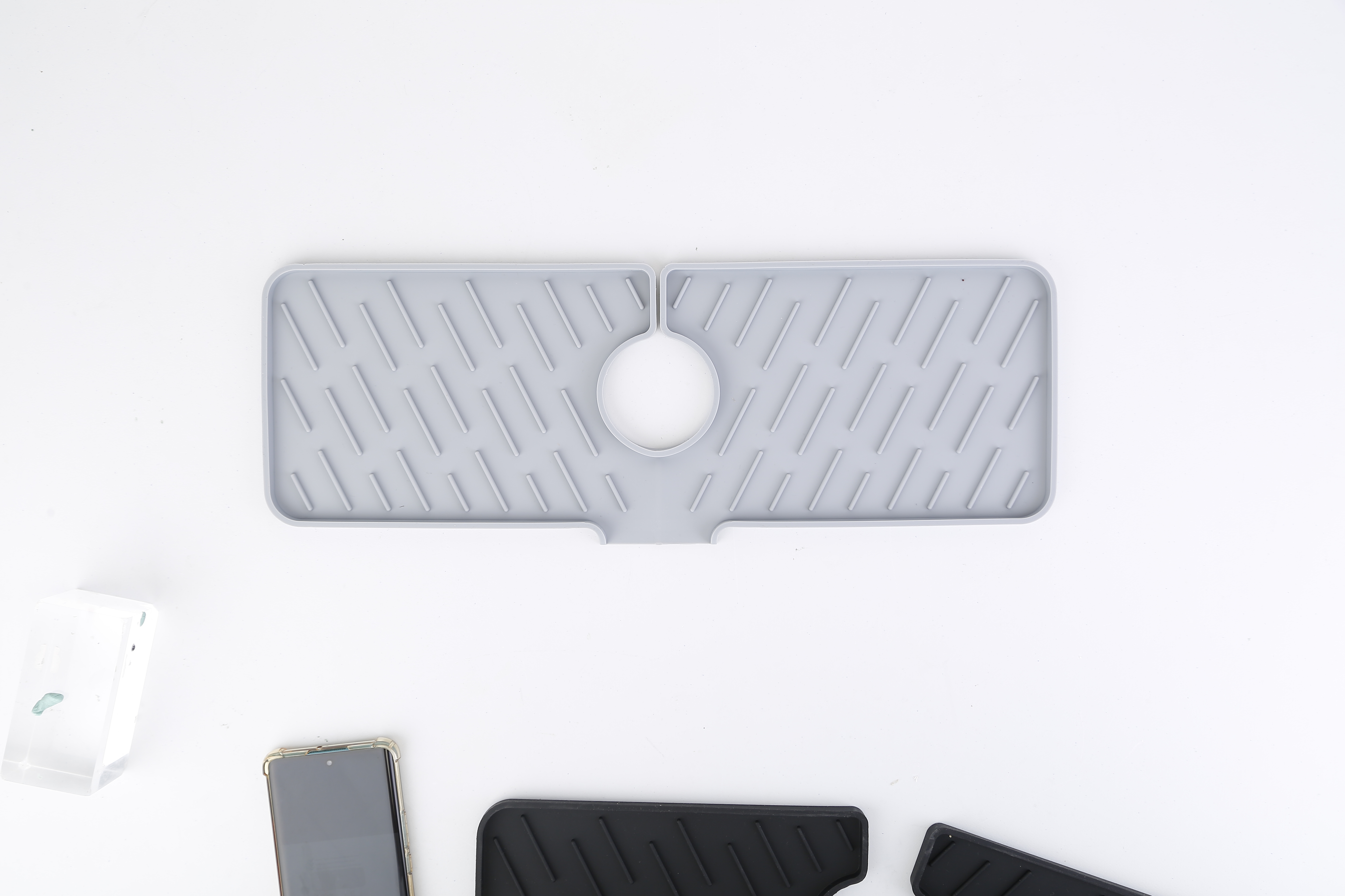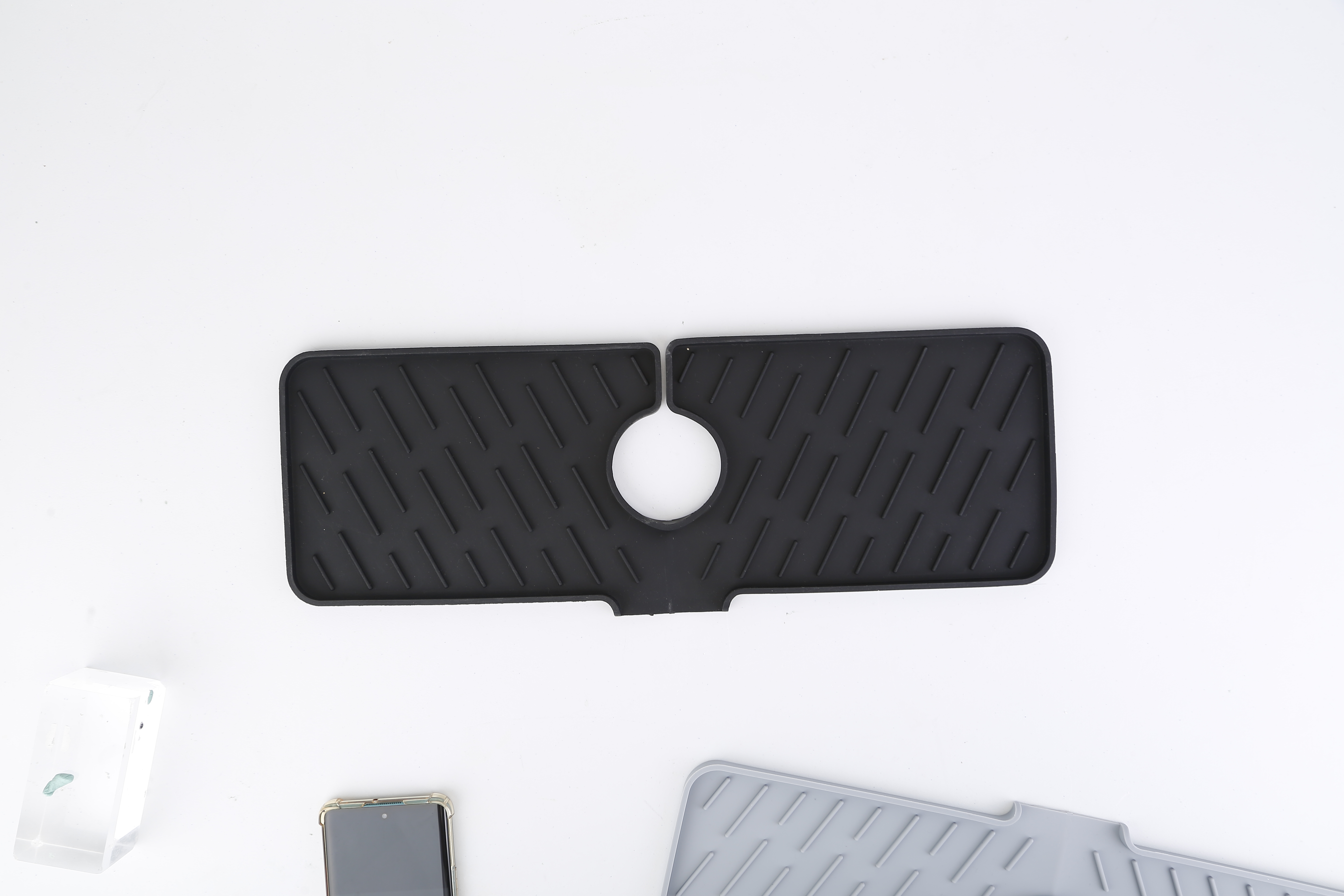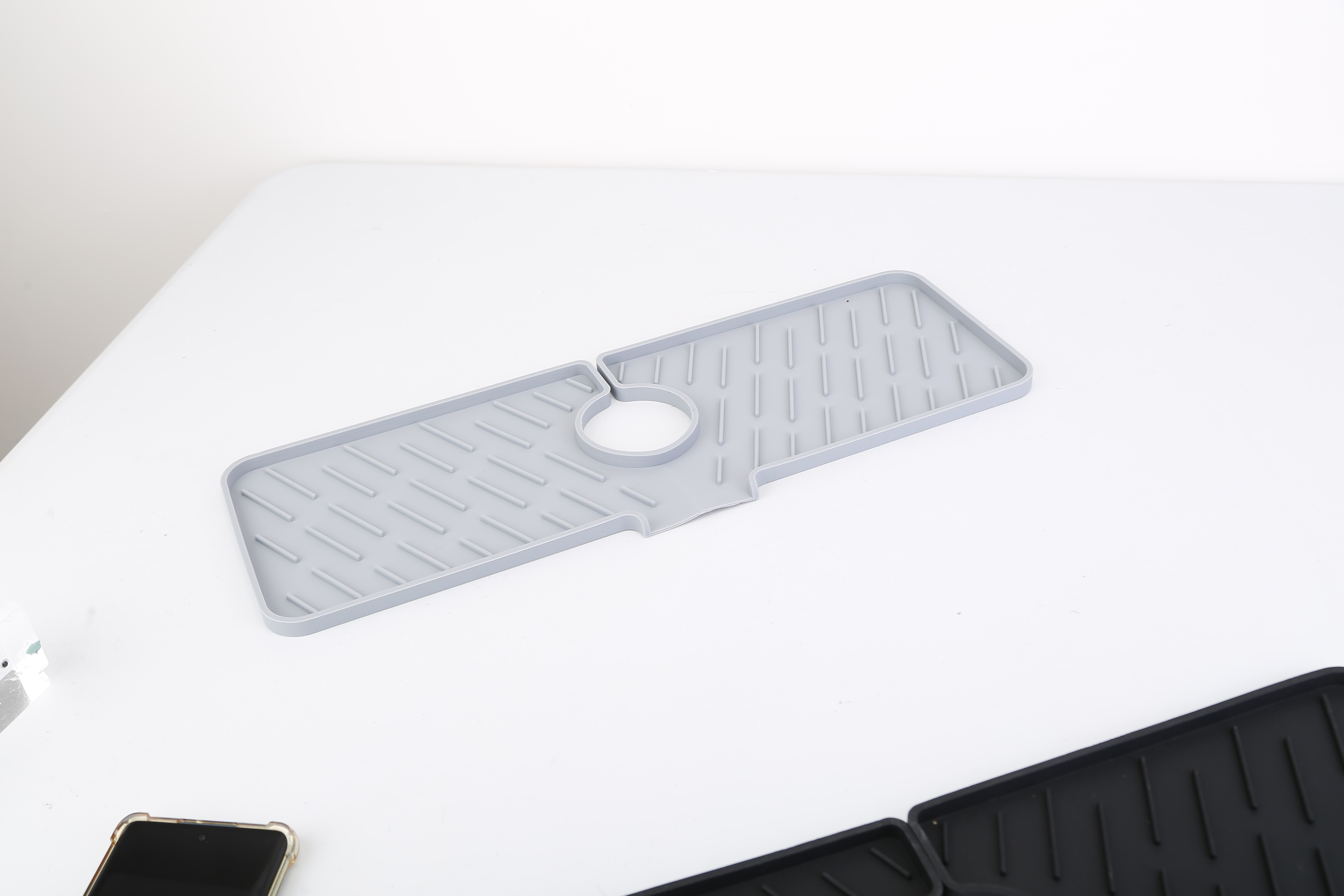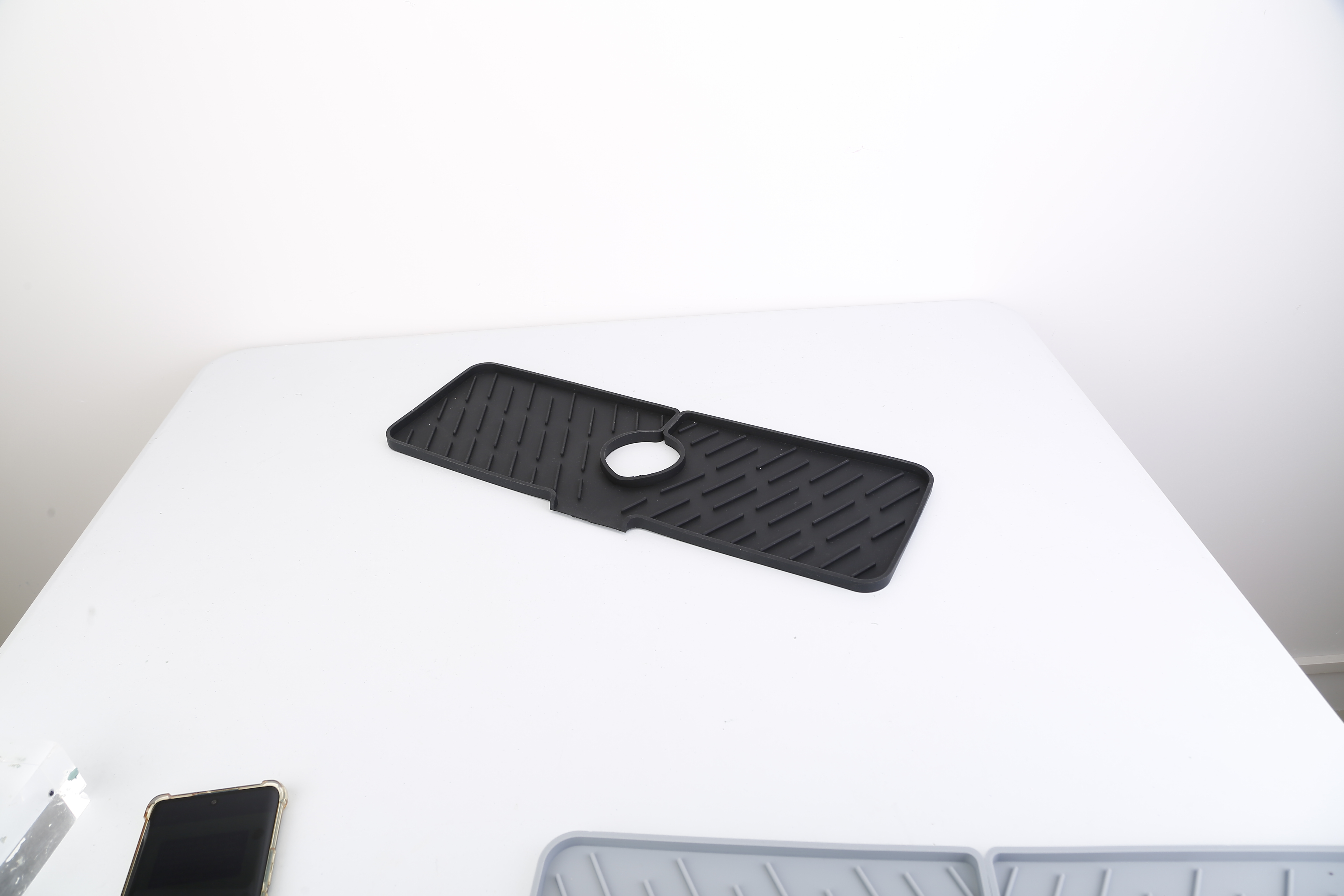 US Local Black-Grey Color Options -- 1Pc Silicone Faucet Mat Kitchen Sink Splash Guard Drain Mat Drying Pad Kitchen Mat Bathroom Drip Catcher