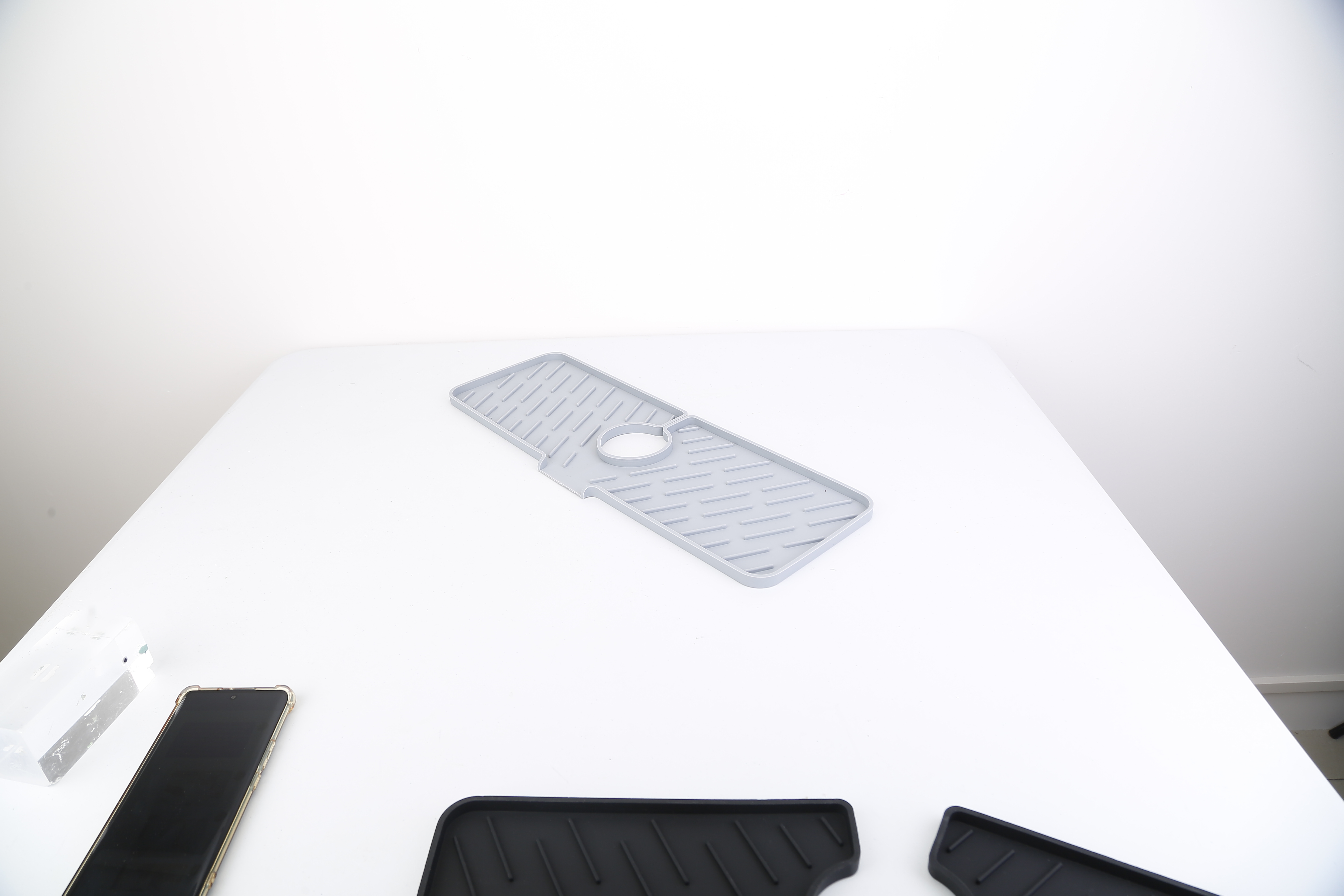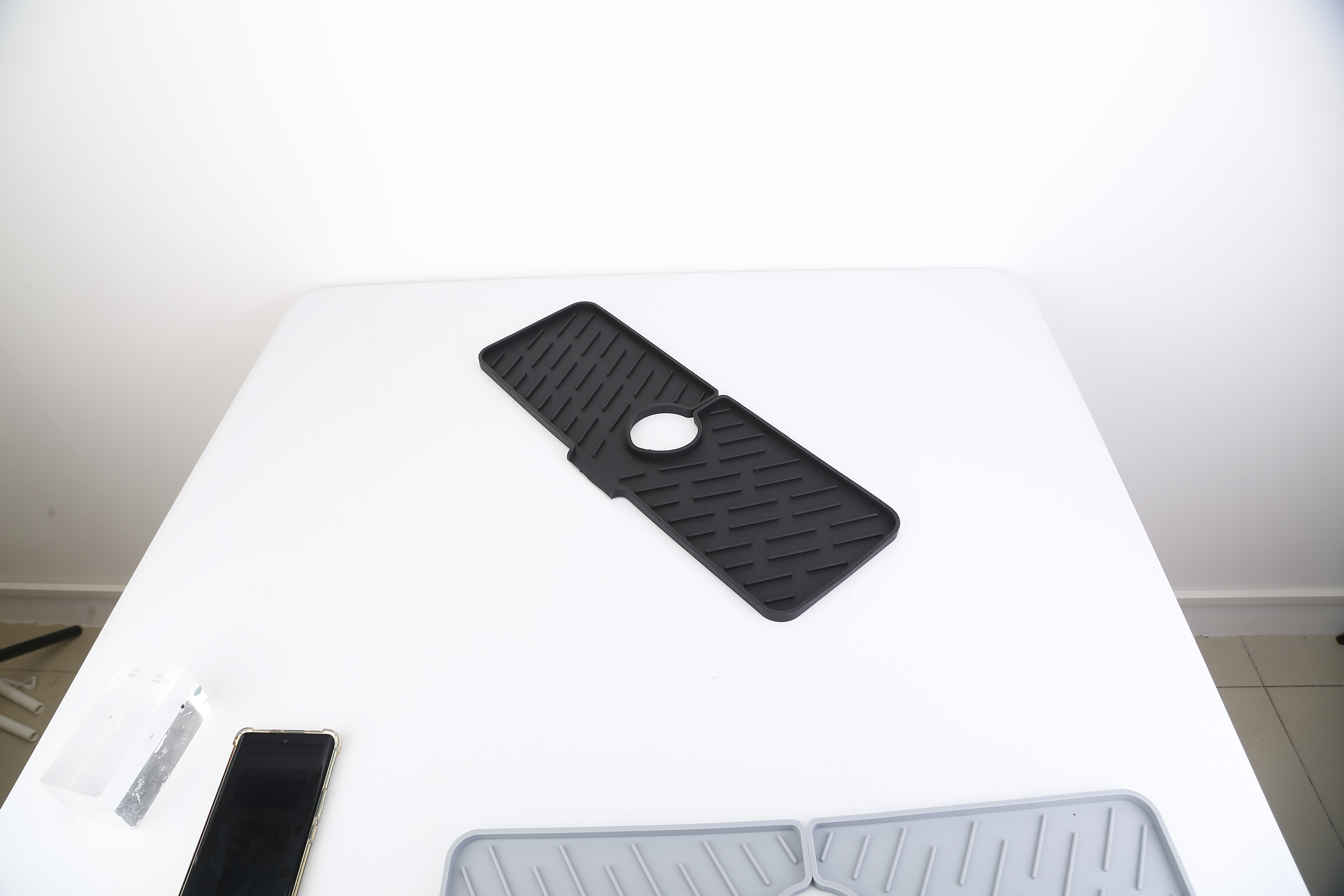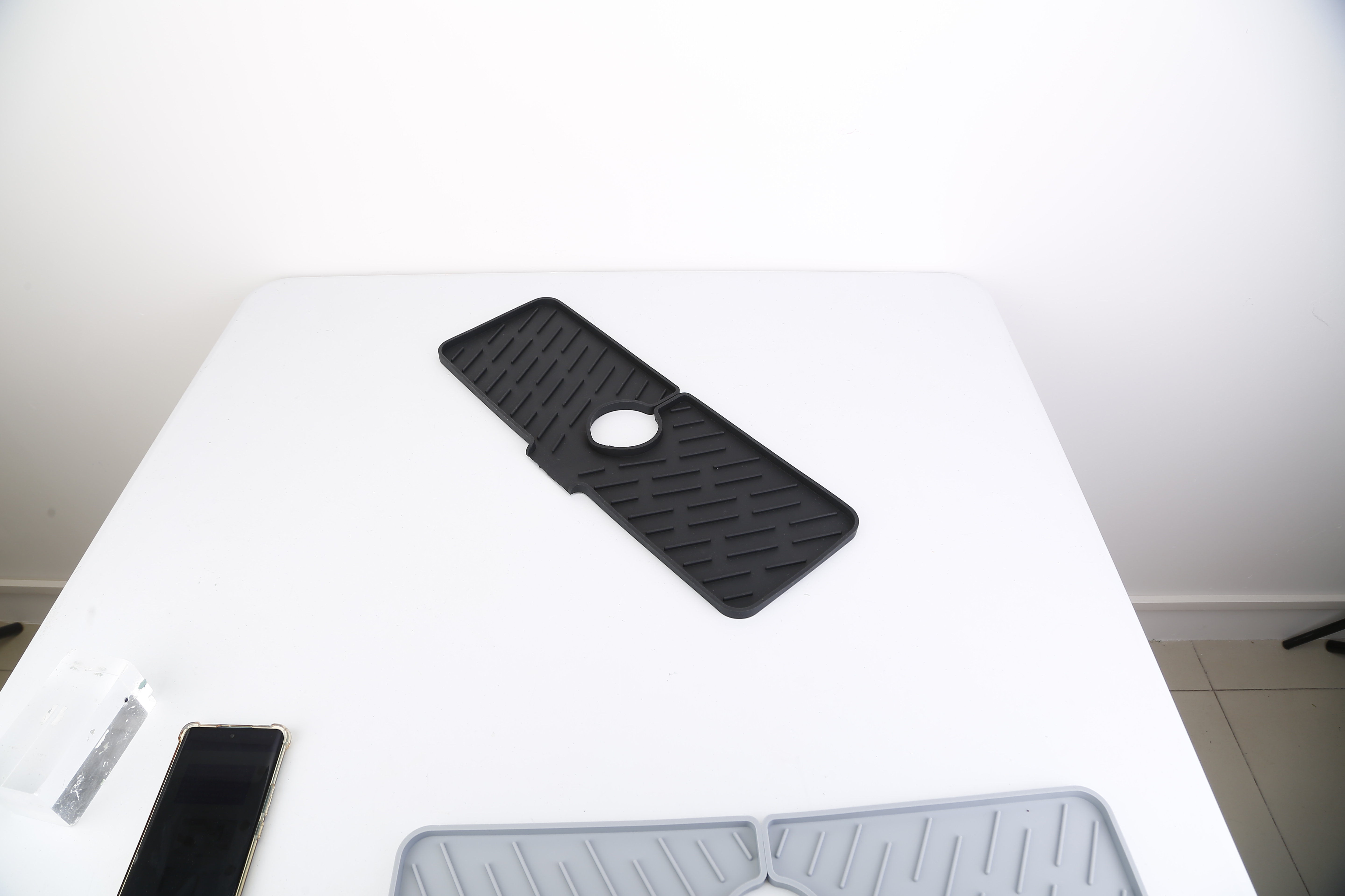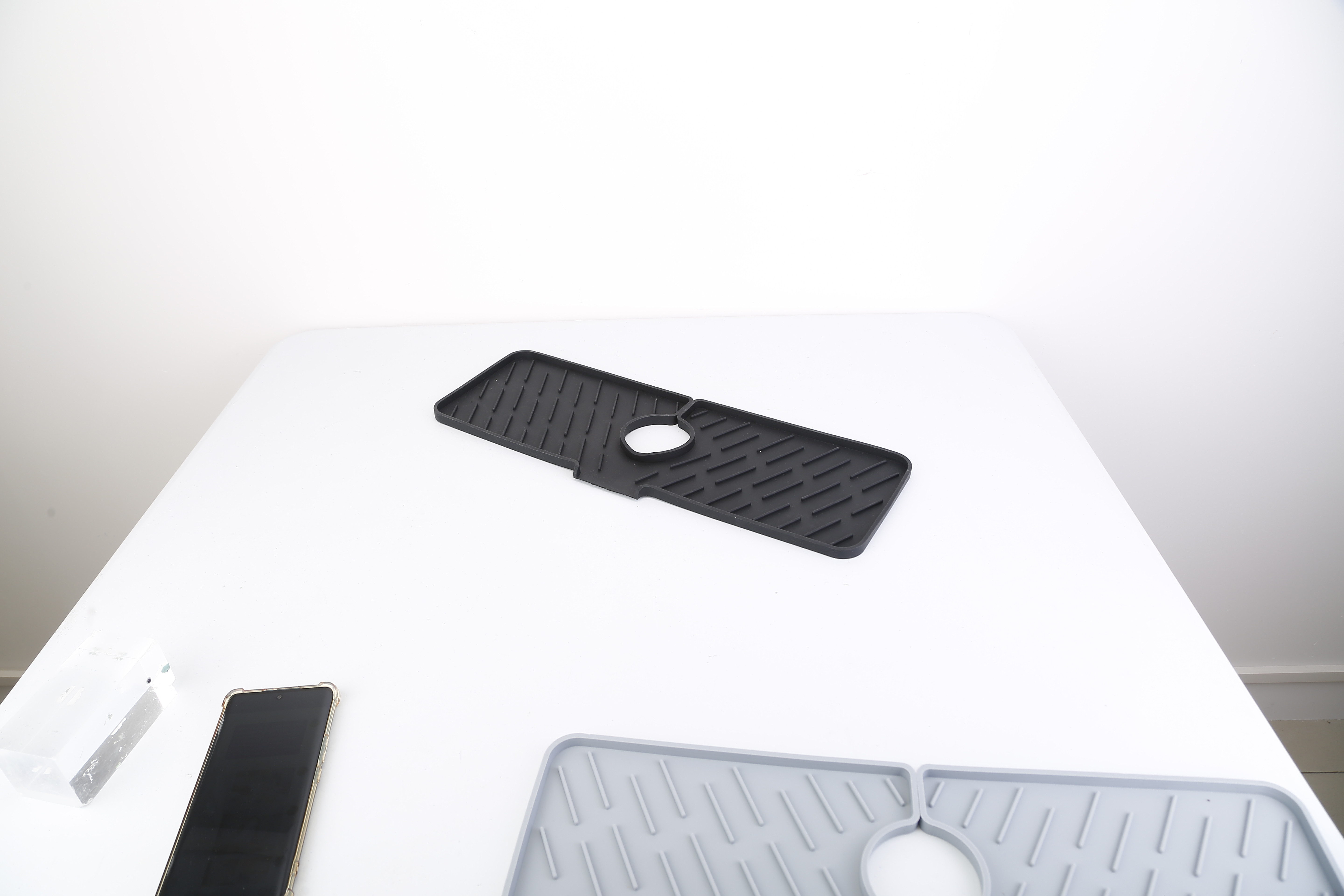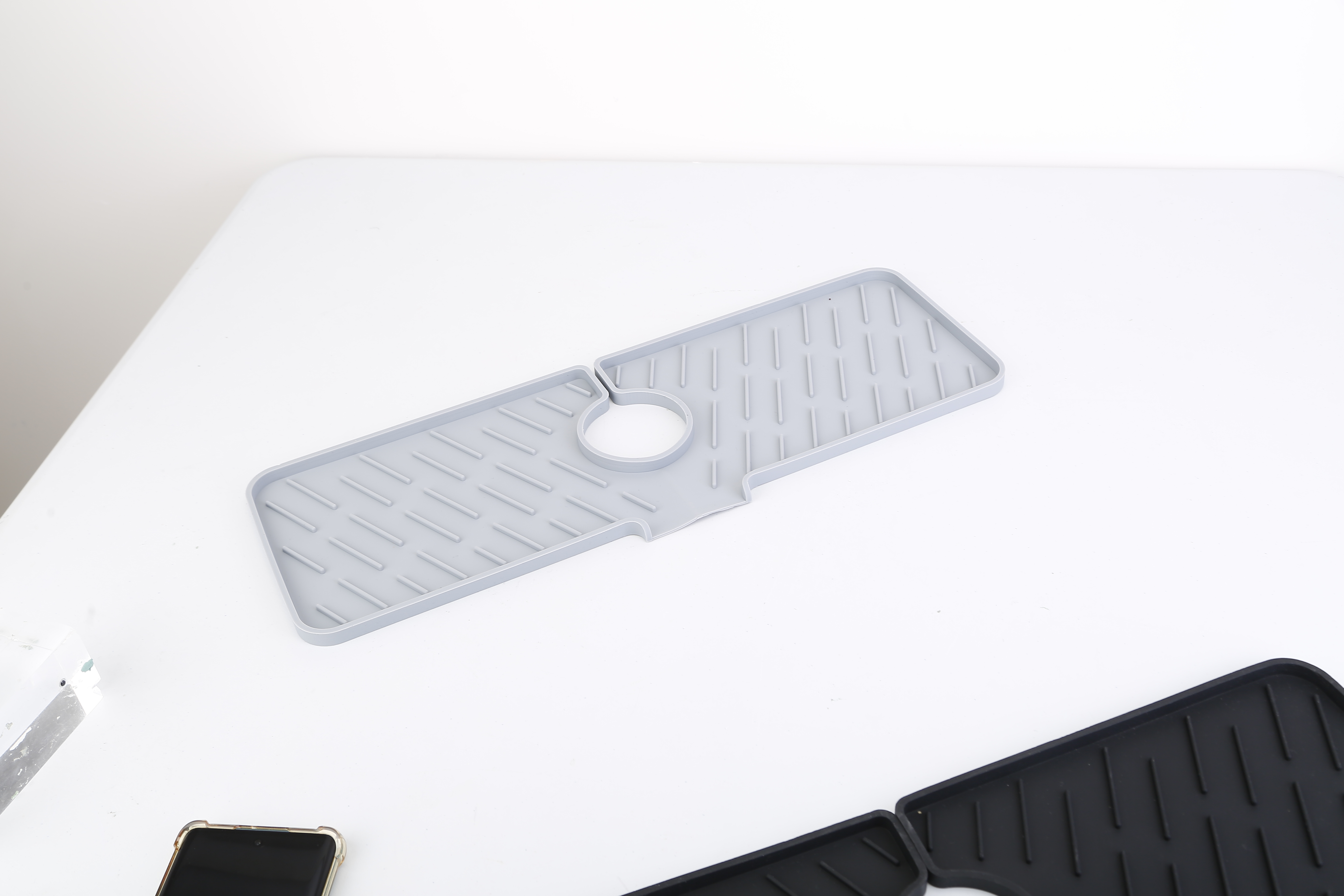 US Local Black-Grey Color Options -- 1Pc Silicone Faucet Mat Kitchen Sink Splash Guard Drain Mat Drying Pad Kitchen Mat Bathroom Drip Catcher