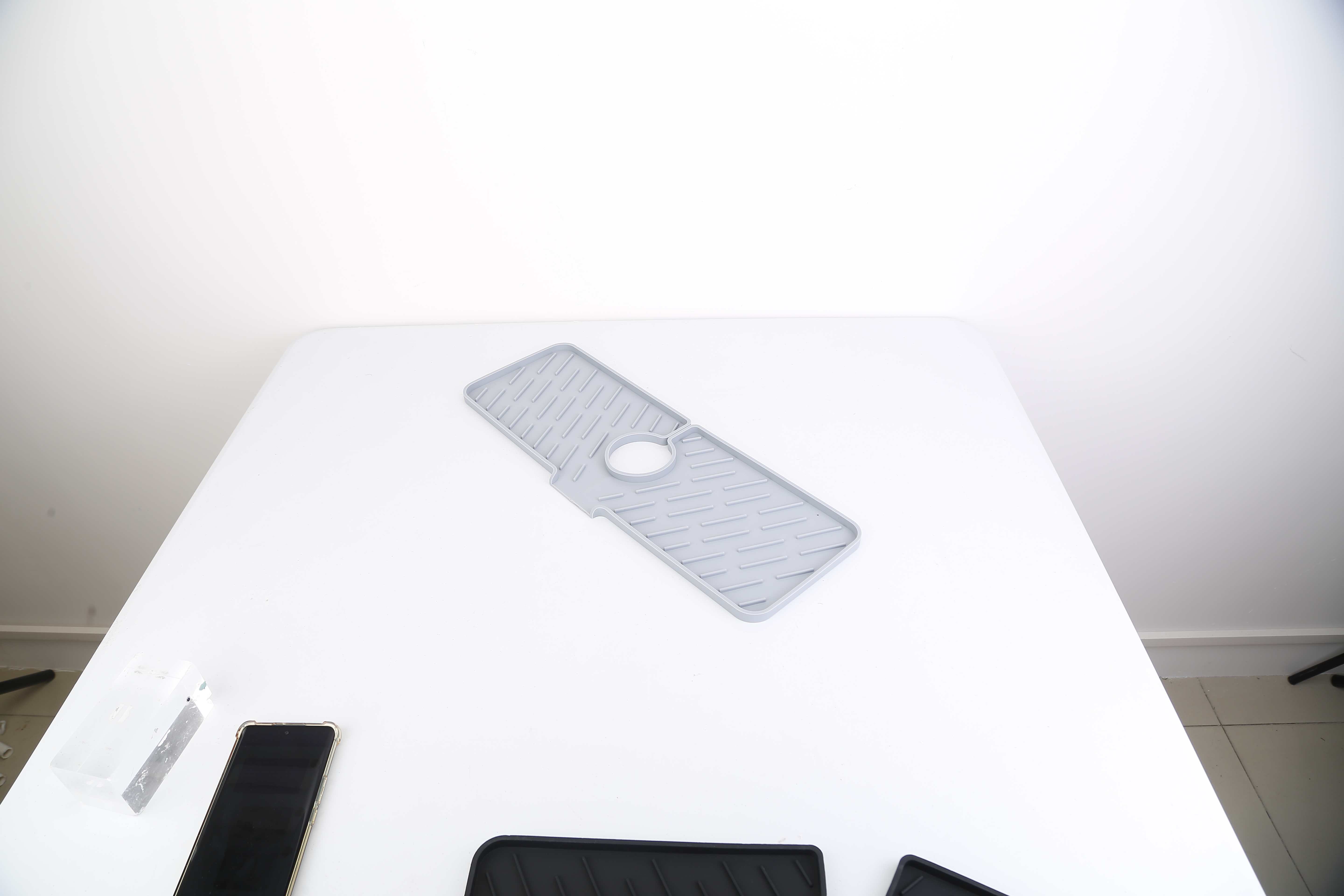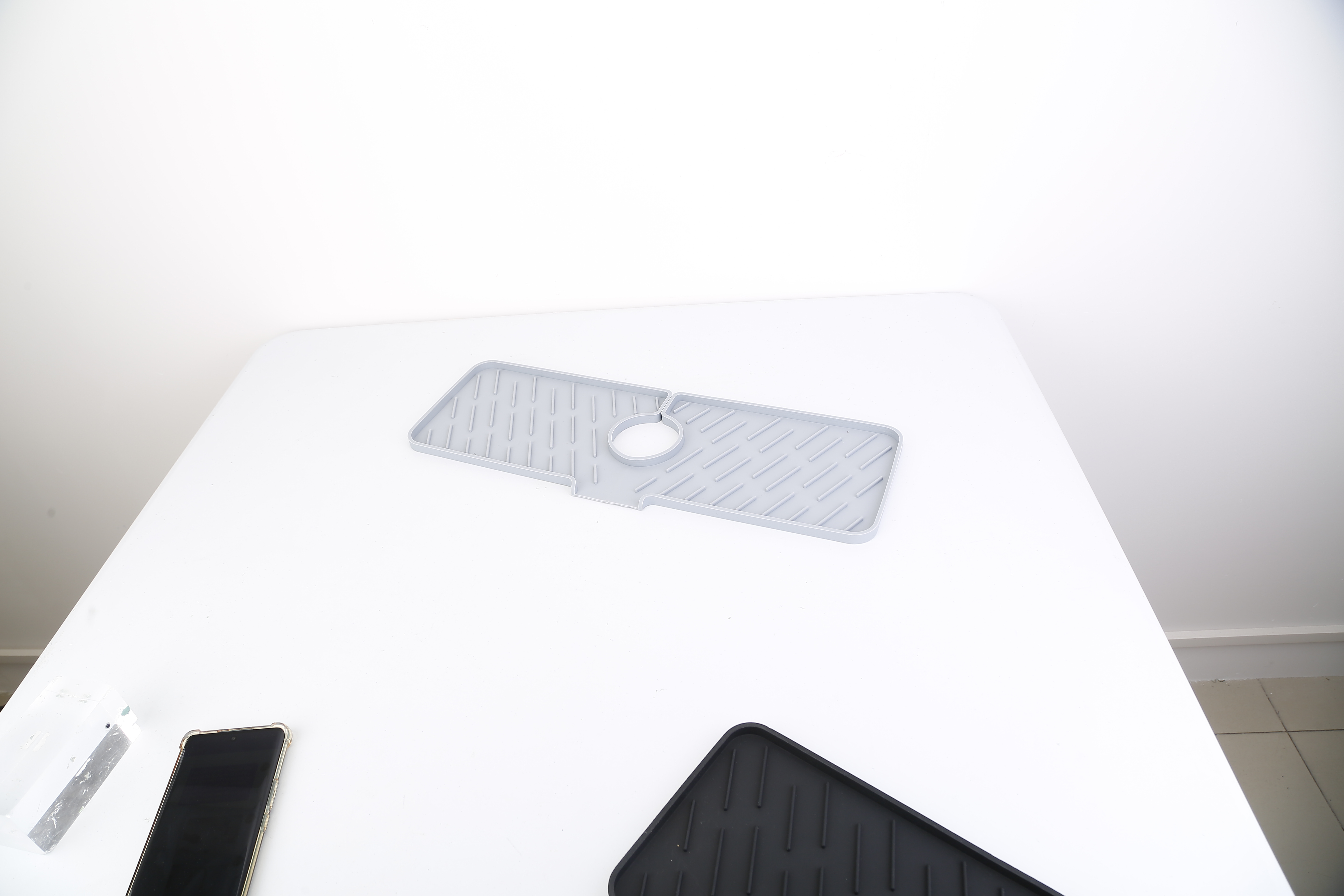 - *Premium Silicone Material*: Made of food-grade silicone material,it¡¯s non-toxic,reusable,and durable. Unlike the fabric mat on the market,there is no need to wash and dry the mat frequently as water splashes caught by the mat will be quickly drained to the sink.