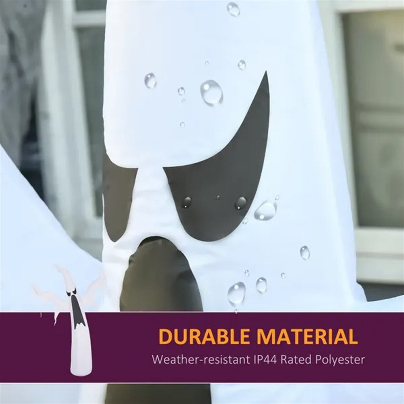 - Mild Wind Or Rain? No Problem: For those more temperamental Halloweens, you're still going to want to scare the pants off your neighbors. The Halloween outdoor decoration is made of IP44 rated polyester cloth that is waterproof to withstand outdoor weather.