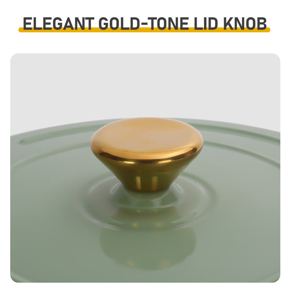 Gold-plated stainless steel knob, enhancing the aesthetic appeal, improving the usage texture, glossy finish combined with gold details, enhancing the kitchen aesthetic style, the metal accessories and enamel colors form a visual hierarchy.