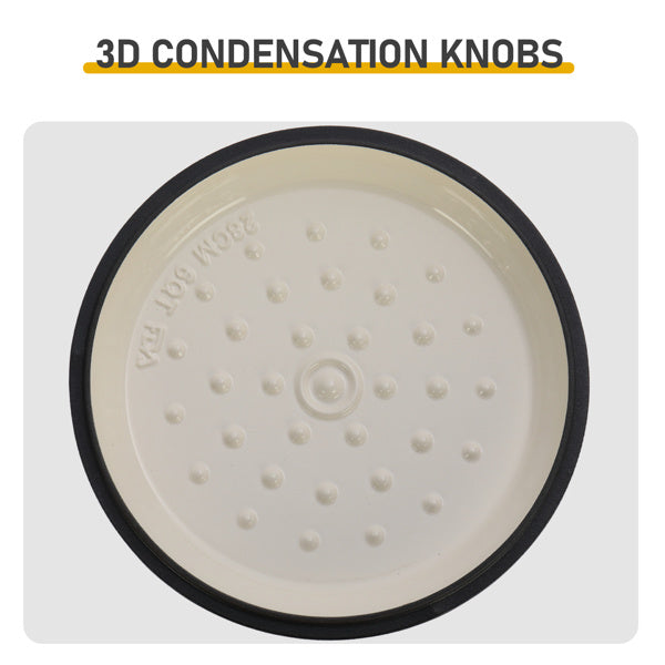 Triple lock freshness design, thick pot wall, closely adhering to the cast iron pot cover, drip-proof pot cover, condensation protrusions (24 of them), 3D three-dimensional condensation protrusion design, effectively locking in the moisture and flavor of the ingredients, closely adhering to the pot cover to reduce steam loss, and making the stewing more flavorful.