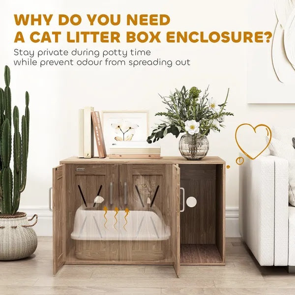 - - Privacy for Your Cat, Cleanliness for You: Give your cat the secluded potty space they deserve. This hidden kitty litter enclosure ensures odor control and a private, stress-free experience, while its spacious interior fits most standard litter boxes