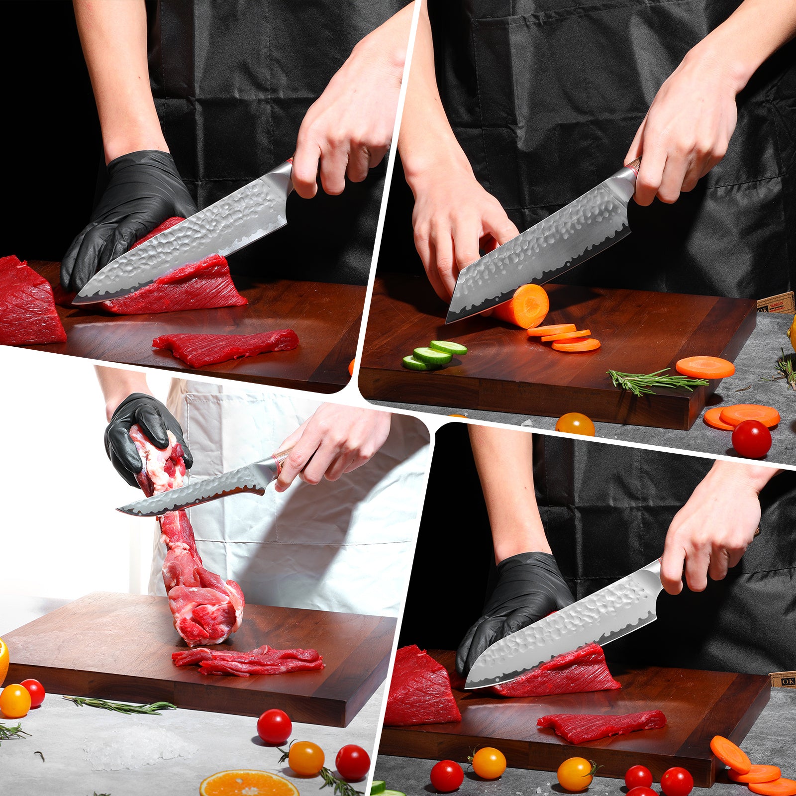 - Features : Japanese Kiritsuke chef knives are hand forged using the traditional one piece molding process to prevent the handle from falling off, are durable and easy to cut. It makes our kitchen knives more refined, sharper and last longer