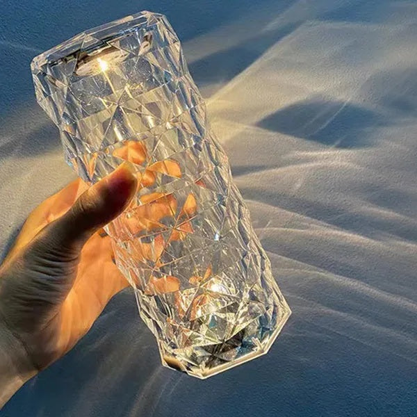 **Gorgeous Crystal Diamond Lamp*:A simple and modern luxury lamp,it shines like a diamond with special 3D technology. Turn on table lamp,3D visual effect is like a rose blooming on the table. The exquisite crystal lamp adopts diamond cut surface to show the gorgeous temperament,decorate your room and create a comfortable and romantic atmosphere.