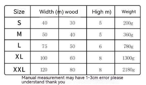 Specifications: S40x30x5(cm) sponge (200g),M50x40x5(cm) sponge (360g),L75x50x6(cm) sponge (780g),XL100x60x8(cm)(1300g) sponge type, XXL120x80x8(cm)(2180g) sponge type