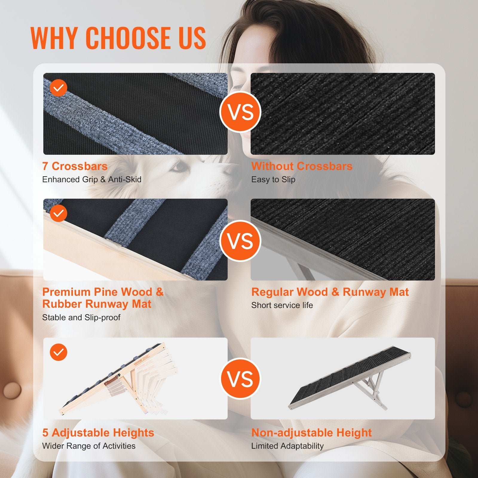 Dog Ramp, Folding Pet Ramp For Bed, Adjustable Dog Ramp For Small, Large, Old Dogs Cats, Wooden Pet Ramp With 39.3Long Ramp, Adjustable From Suitable For Couch, Sofa, Car