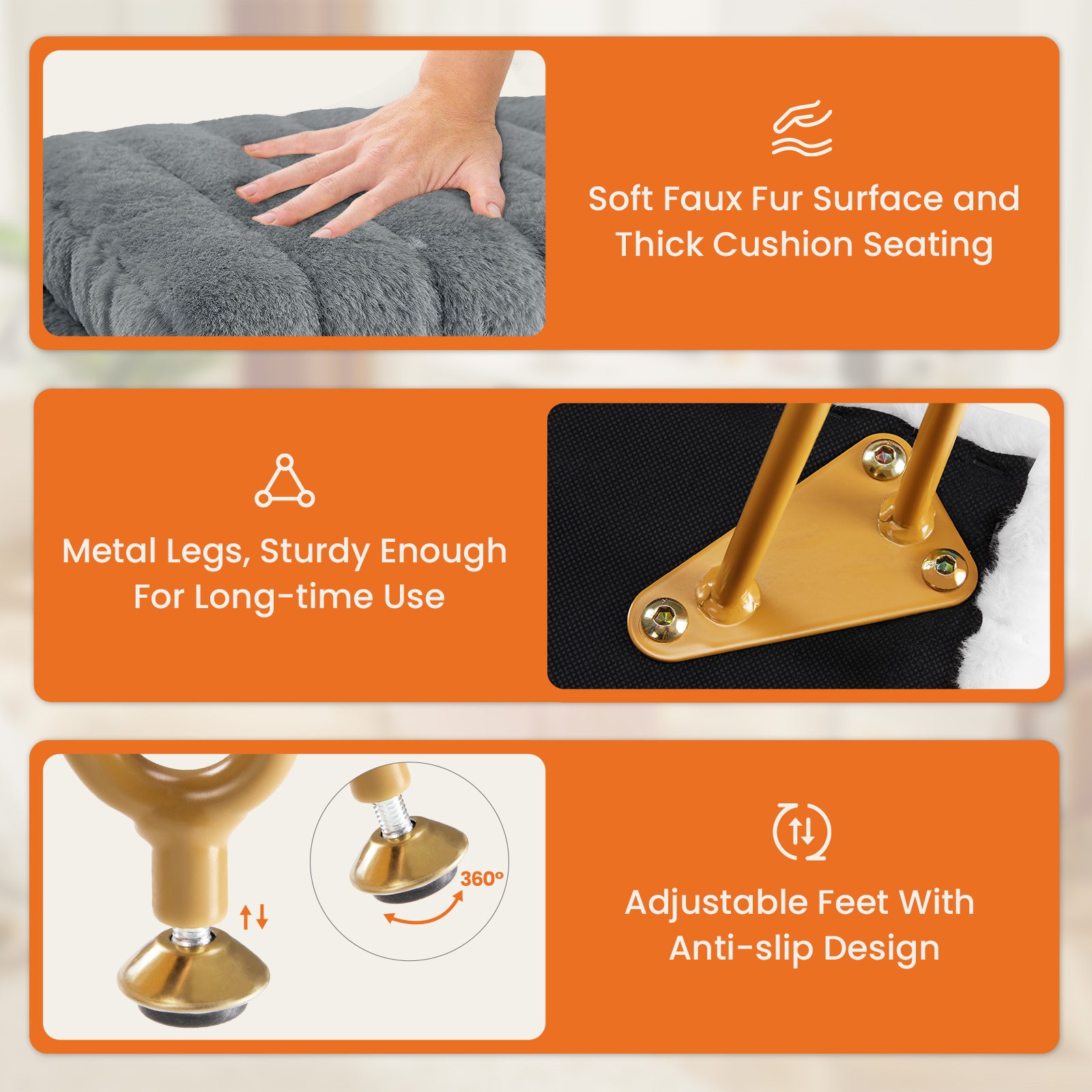 - Comfortable Faux Fur Fabric: Crafted from soft faux fur fabric with a thick padded cushion, ensuring exceptional comfort. Available in 3 cute colors: white, pink, and grey, each adding a touch of charm and fashion to any setting. Suitable for diverse scenarios, such as bedroom, entryway, living room, office, bathroom, etc.