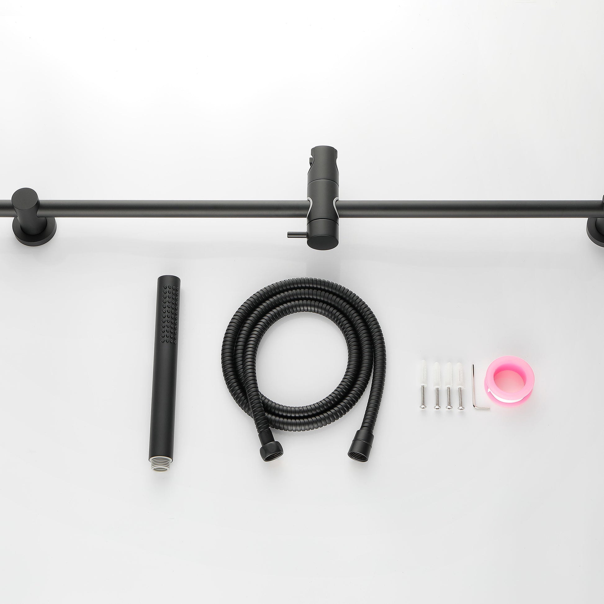 Package Includes: Matte black slide bar handheld shower includes handheld sprayer, sliding bar, shower holder, wall supply elbow, 59inches hose, hardware pack, and detailed installation guide.