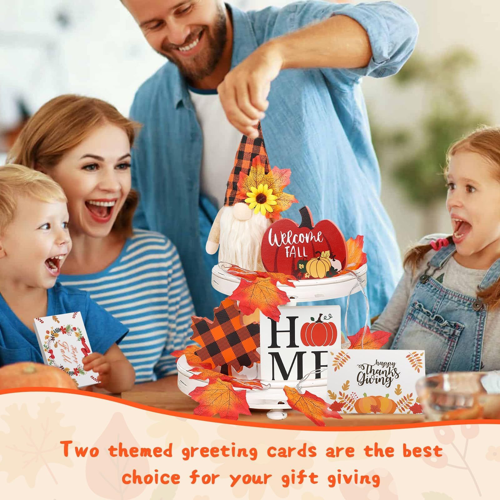- Autumn Decoration: The tiered tray fall decor is very suitable for layered trays, display stands, dining tables, fireplaces, etc. The tiered tray decor fall is used to decorate cafes, boutiques or offices, creating an interesting and warm atmosphere in autumn. There are 2 autumn and Thanksgiving themed greeting cards attached, which you can put on the tray for decoration or use when giving gifts