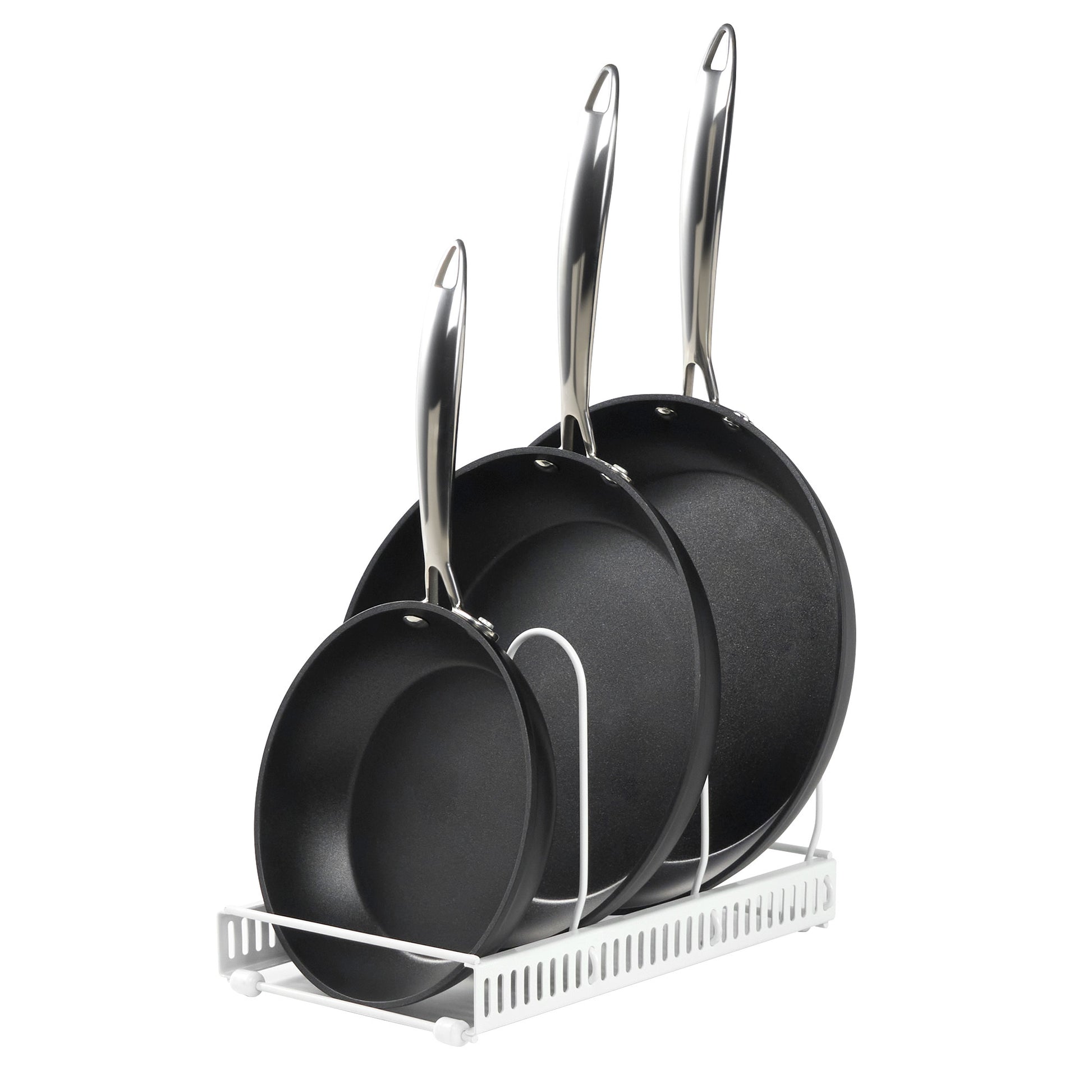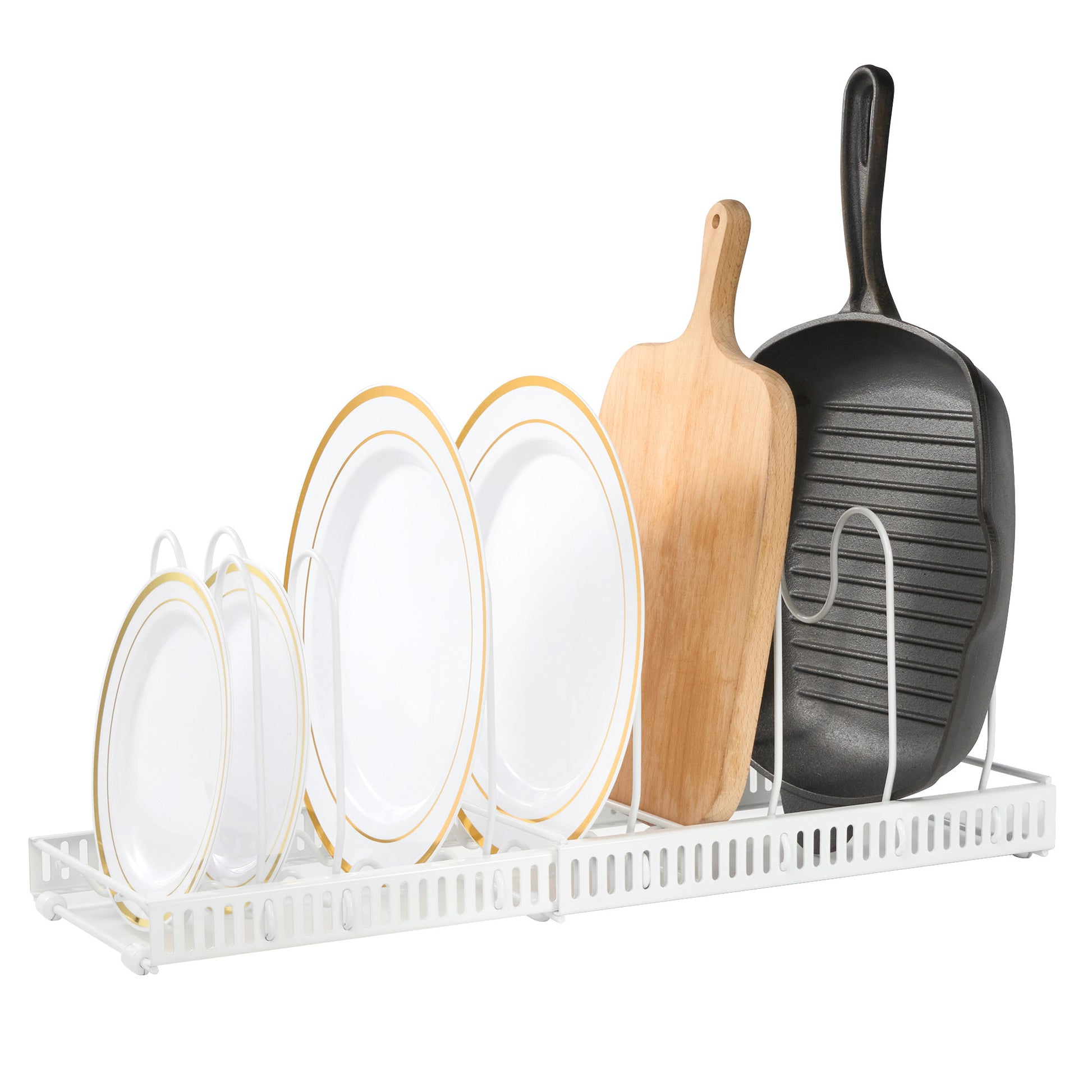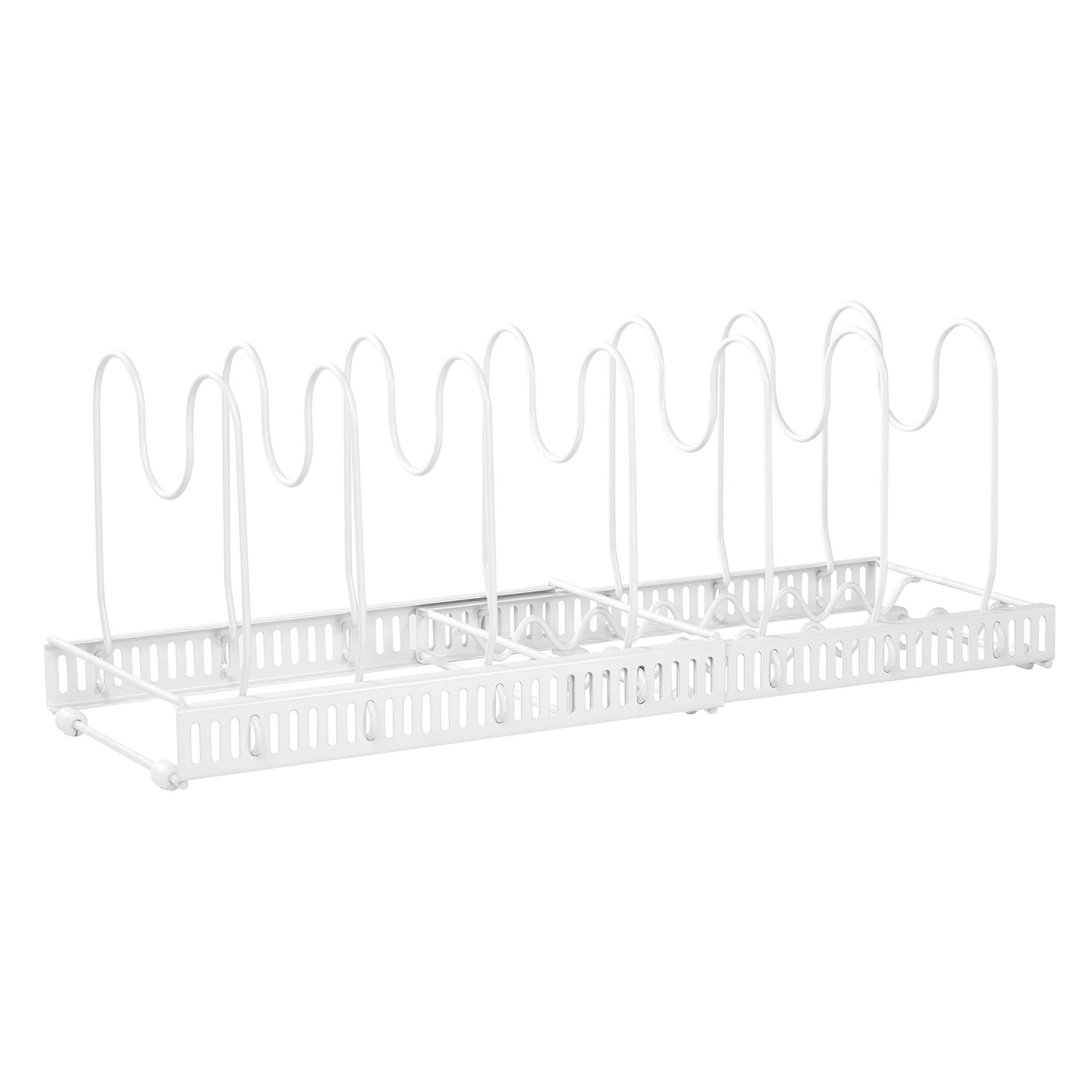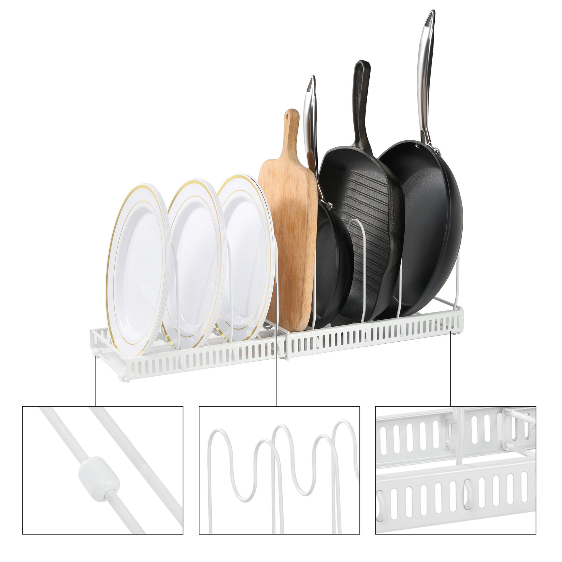 ¡¾High quality materials¡¿The pan holder is made of high quality iron, with strong bearing capacity, not easy to tilt or bend.¡¾Adjustable Separator Spools¡¿The pot shelf features 7 removable U-shaped iron spools, so you can adjust the width between the separator spools according to the size of kitchen sets such as pots and pans.