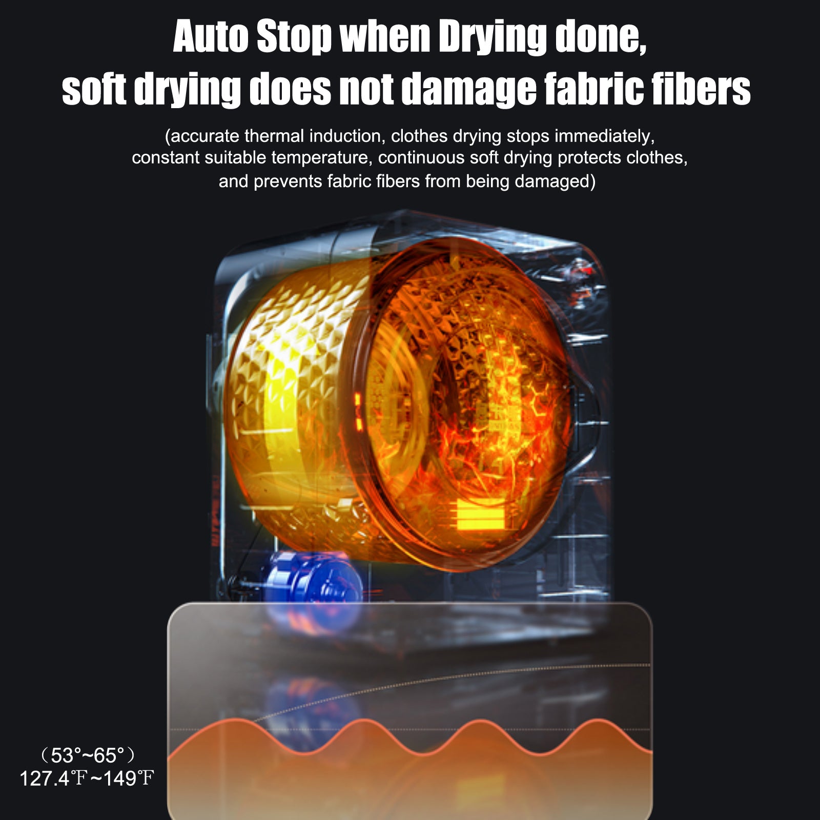 This portable dryer can ensure your clothes dry faster. Even if it keeps raining, you can still wear beautiful clothes every day. The large-diameter drum cooperates with two-way rotation to automatically disperse the wrapped clothes, which can effectively loosen the fibers of the hard clothes and restore the fluffy feeling of the clothes. It is a good helper for you to dry clothes.