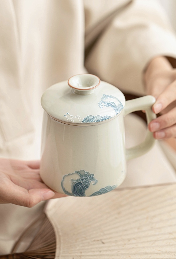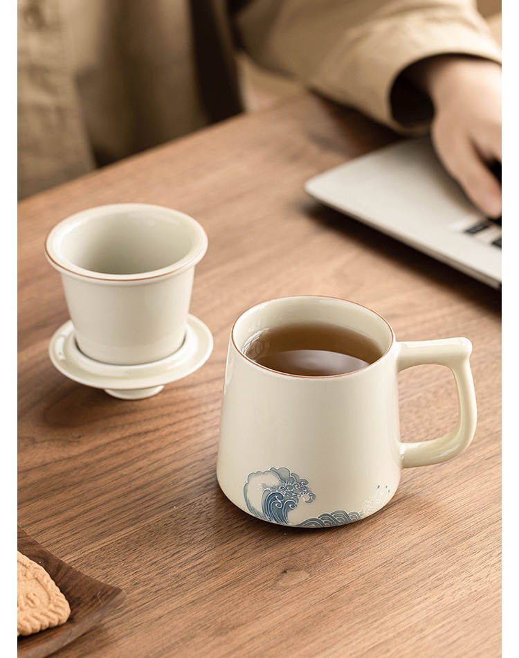 Hand-painted Heap Carving HAILANG Office Cup Home Tea Separation Mug
