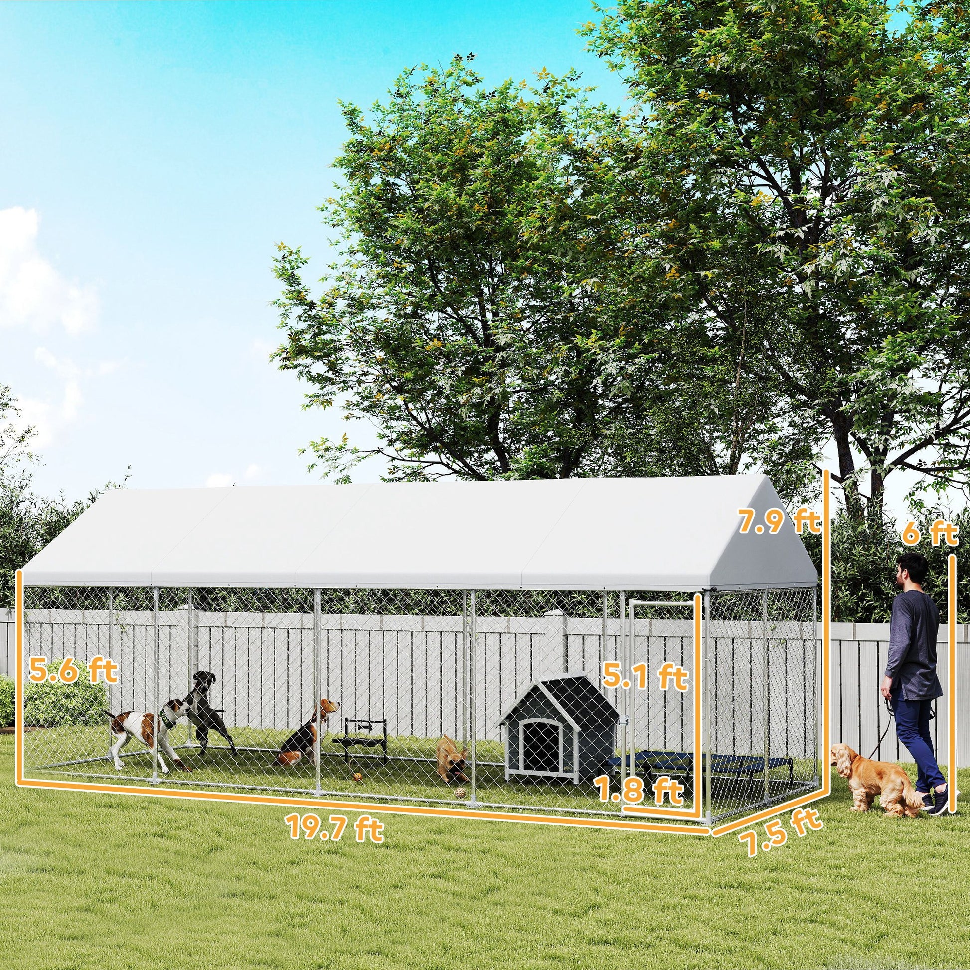 US Local Heavy Duty Outdoor Dog Kennel With Waterproof Roof, Secure Latch, Chain Link Dog Run For Backyard, 19.7 X 7.5 X 7.9