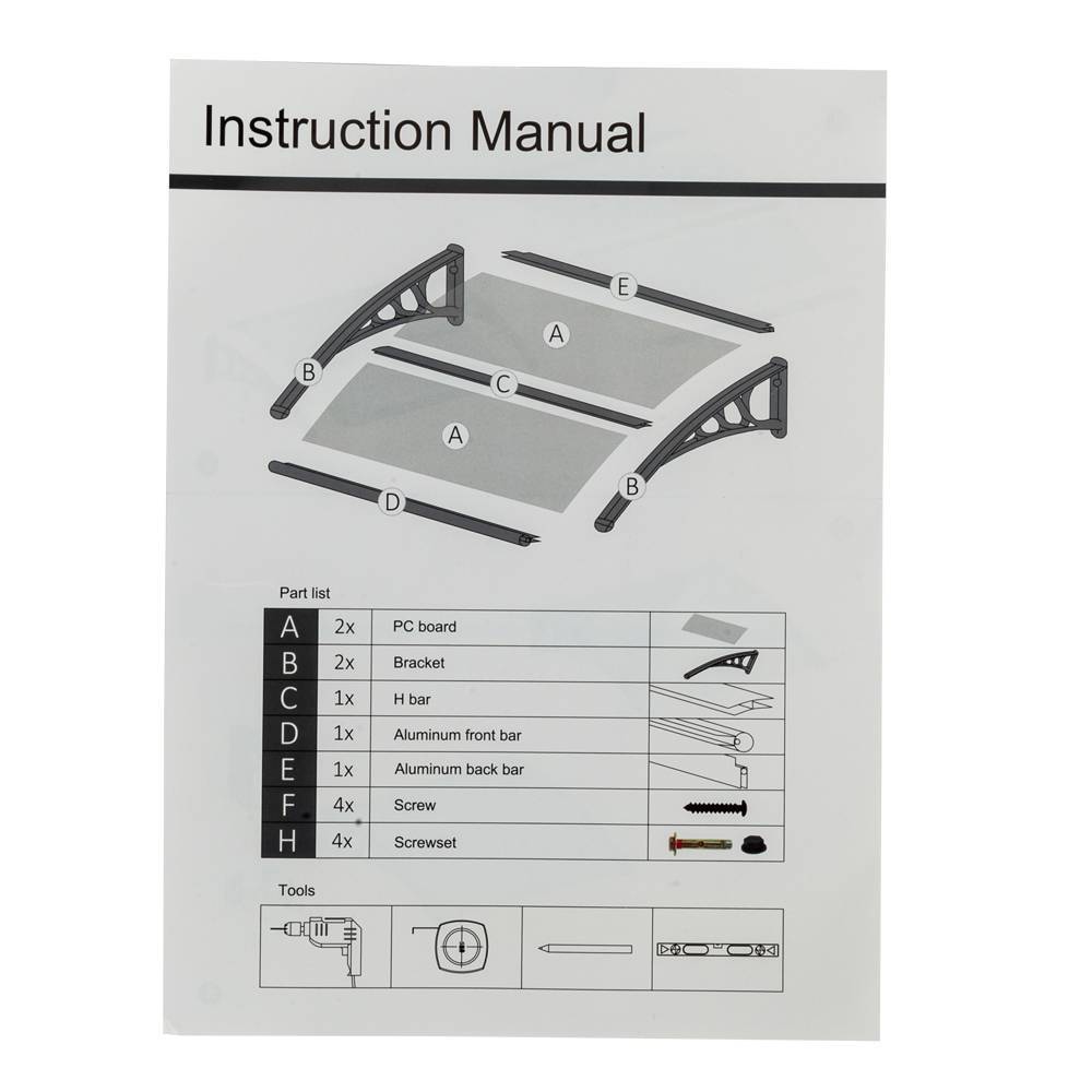 Build a mini shelter for resisting rain or scorching sun at the gate or window! You may feel it wonderful by using our 100 x 80 Household Application Door & Window Rain Cover Eaves Canopy! This is a superb design integrating high-class ABS and polycarbonate materials, durable and wear-resistant to use. Aluminum bracket could strongly sustain this canopy. It bulges to shape a small shield. Quite easy to install and remove! It also acts a decoration for your house! Don't miss such a good chance!