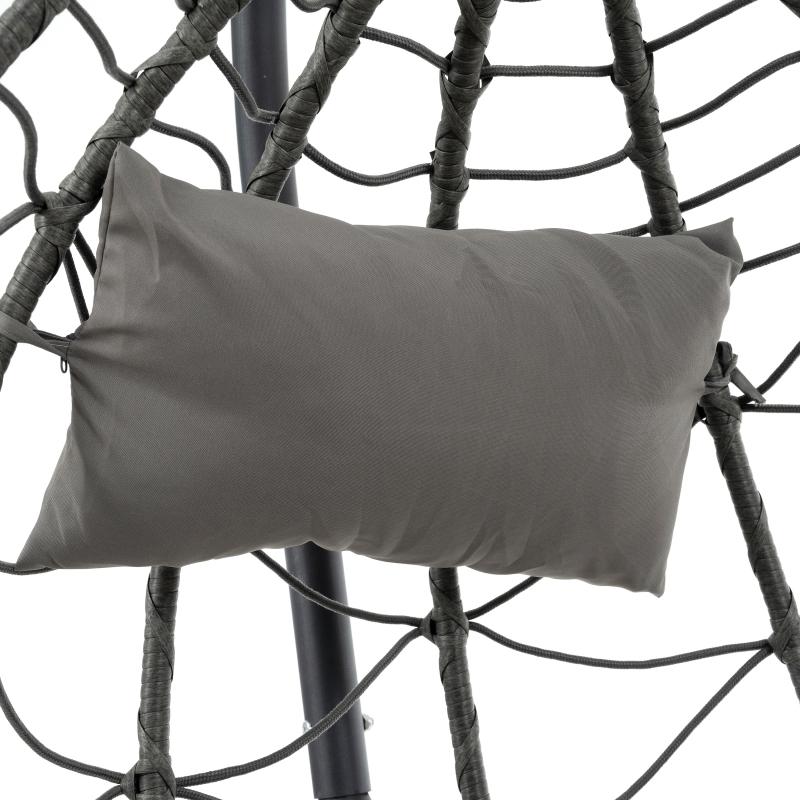 The frame is made of metal tube, with PE wicker rattan, Polyeter Fibre Hand woven. the cushion stuffing is polyester fiber, it can support long time crash. Specifications: Color: Dark Grey Material: PE Wicher, Metal Tube, Plastic End Cap.