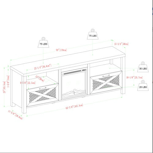 Product Name:Industrial Farmhouse Metal Mesh Drop-Down X-Door 70" Fireplace TV Stand for 80" TVs - Rustic Oak